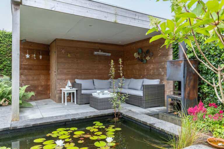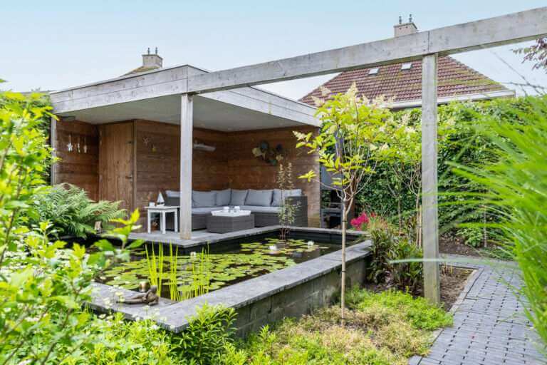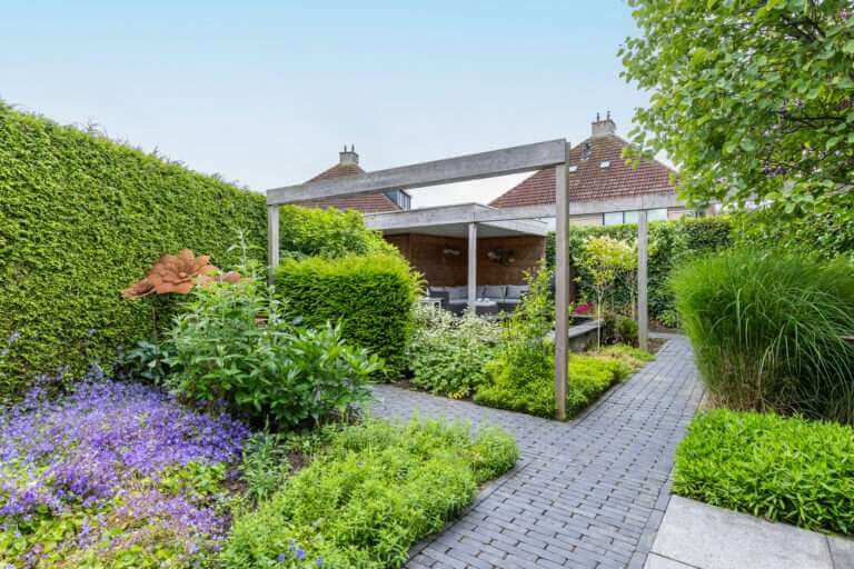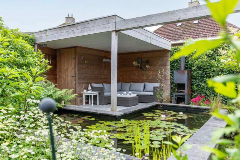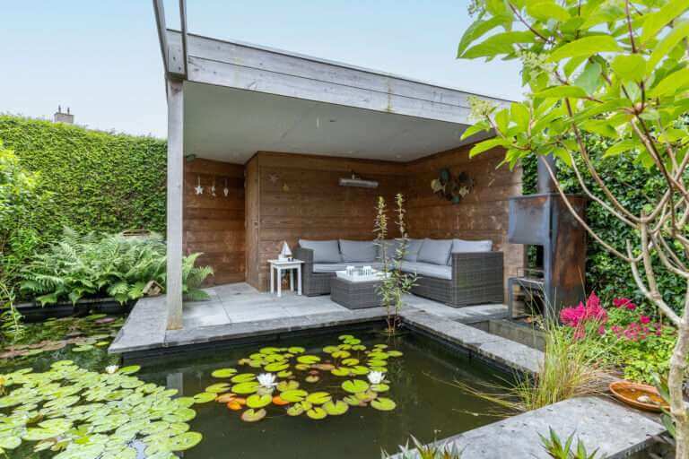 Hal en toilet. Vanuit de hal loop je door naar de uitgebouwde royale woon- en eetkamer met grote raampartijen die een stortvloed aan natuurlijk licht binnenlaten en bovenal vanuit alle standpunten een heerlijk uitzicht op de tuin bieden. vanuit de woonkamer heb je toegang tot de zonnige tuin.
