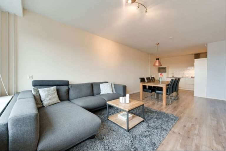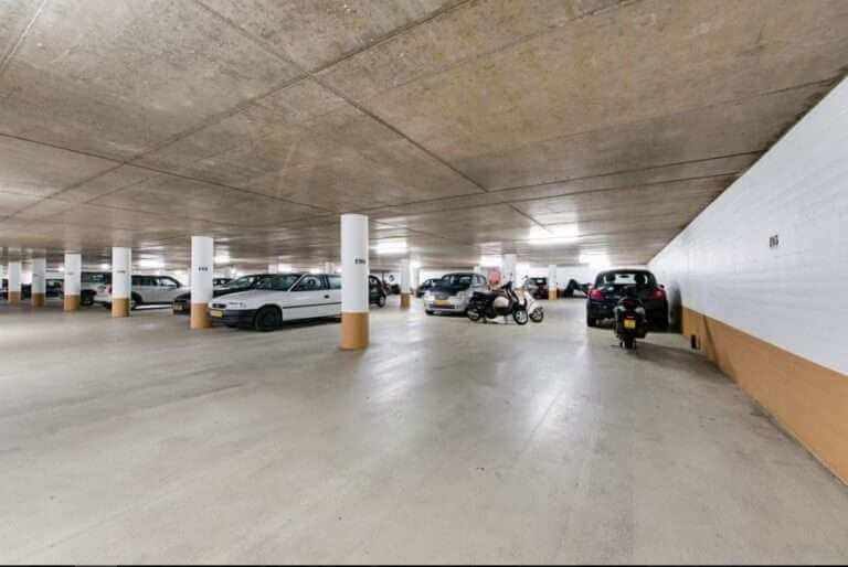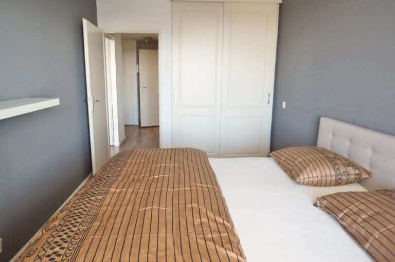 Ruim 2-kamer appartement met eigen optionele parkeerplaats in de afgesloten parkeergarage (€100 extra per maand) en ruim balkon op het westen.