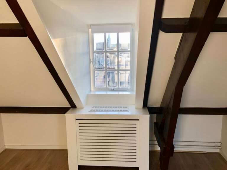 In het centrum van Haarlem, in een rustige autoluwe straat, prachtig zojuist gerenoveerd appartement met 1 slaapkamer, Frans balkon en gelegen op de bovenste van één van de mooiste gebouwen van Haarlem.