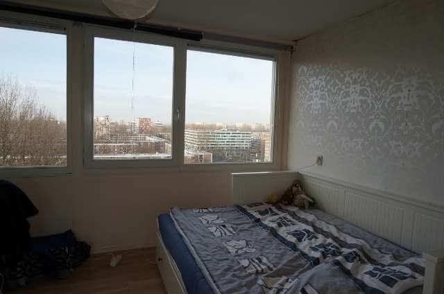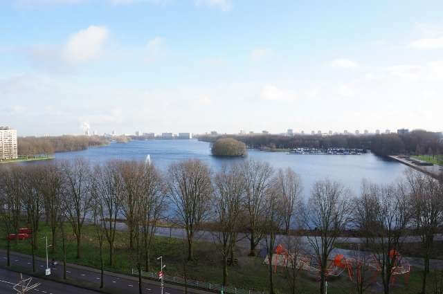Maisonnette, met prachtig panoramisch uitzicht, balkon op het zuiden. Aan de oevers van Sloterplas en het Sloterpark. De woning is gelegen op de 6e en 7e verdieping.
