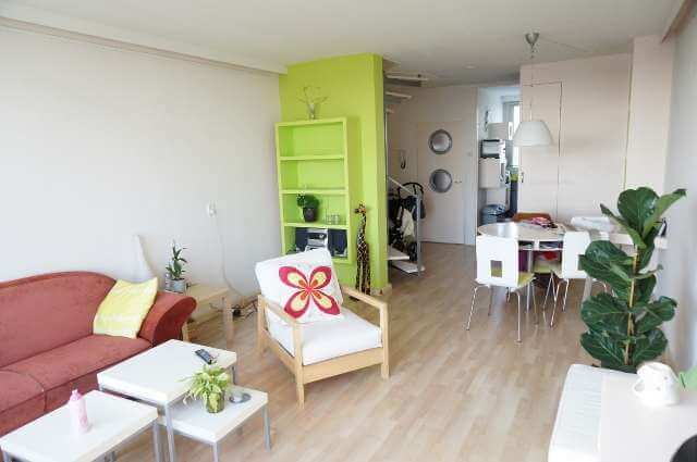 U bereikt de entree van het appartement op de 6e verdieping. Ruime hal met toegang tot woonkamer en open keuken voorzien van inbouwapparatuur.