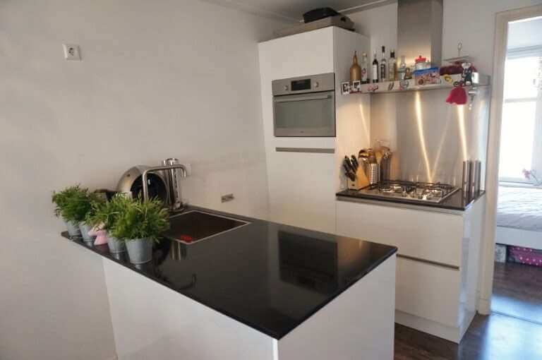 Het appartement is gelegen in een idyllisch stukje Amsterdam, in een autovrije straat met veel winkelaanbod.