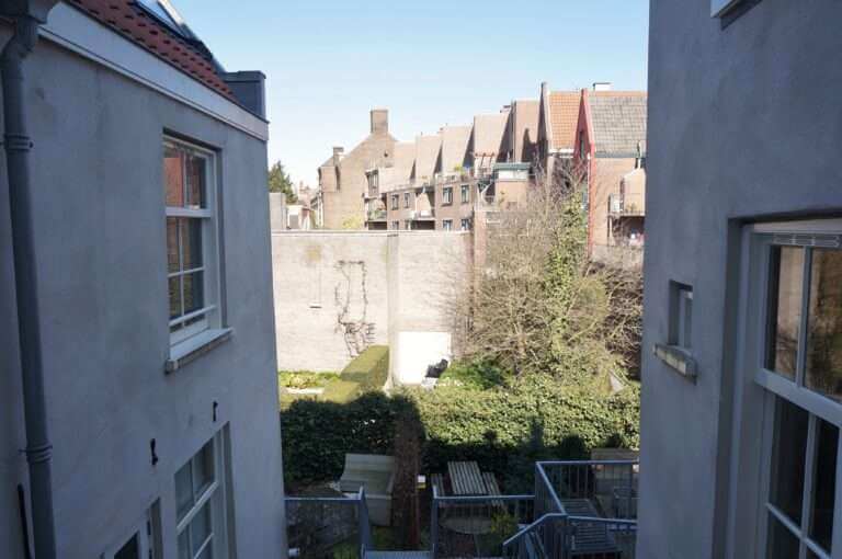 De woning heeft vanuit de woonkamer (voorkant) en slaapkamer (achterkant) vrij uitzicht.
