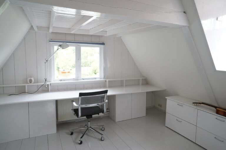 Via de trap bereik je de zolder alwaar zich de master bedroom, de badkamer met ligbad, en de studio annex de werkkamer bevinden.