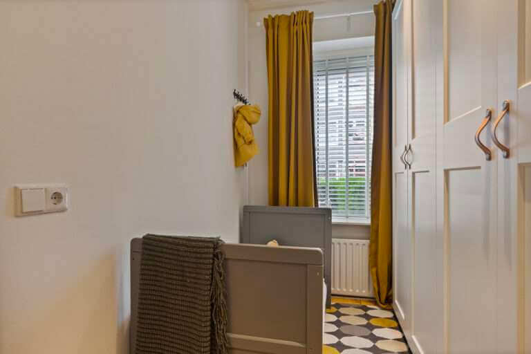De grote slaapkamer is gelegen aan de achterzijde van de woning. Deze kamer biedt voldoende ruimte voor een tweepersoonsbed en een ladenkast.