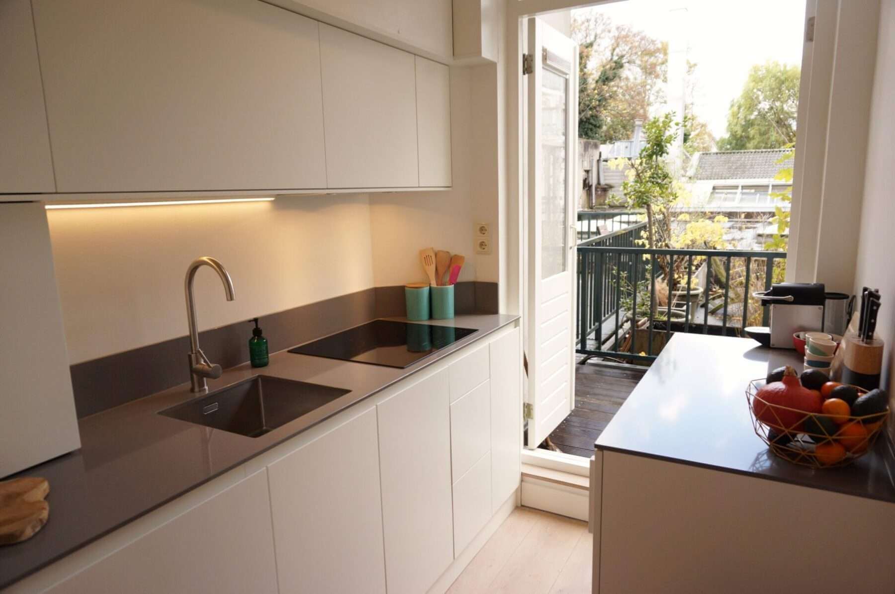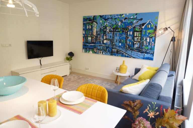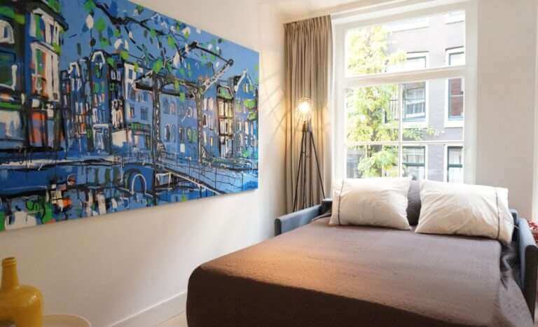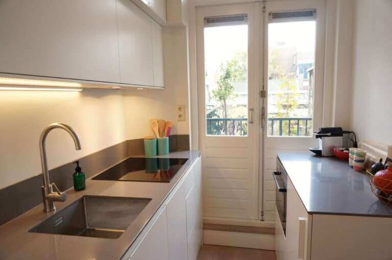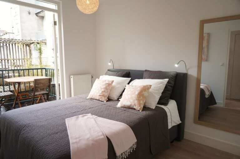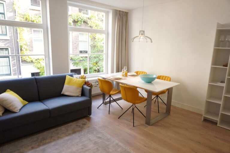 In De Jordaan, nieuw gerenoveerd en stijlvol gemeubileerd high end 2 kamer appartement (1 slaapkamer) met terras.
