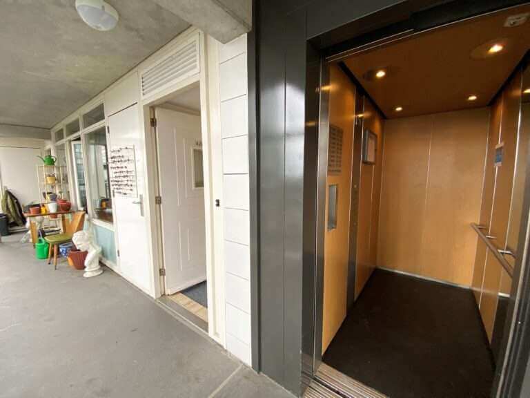 Via de gezamenlijke entree bereik je met de lift of trap de 8e verdieping.
