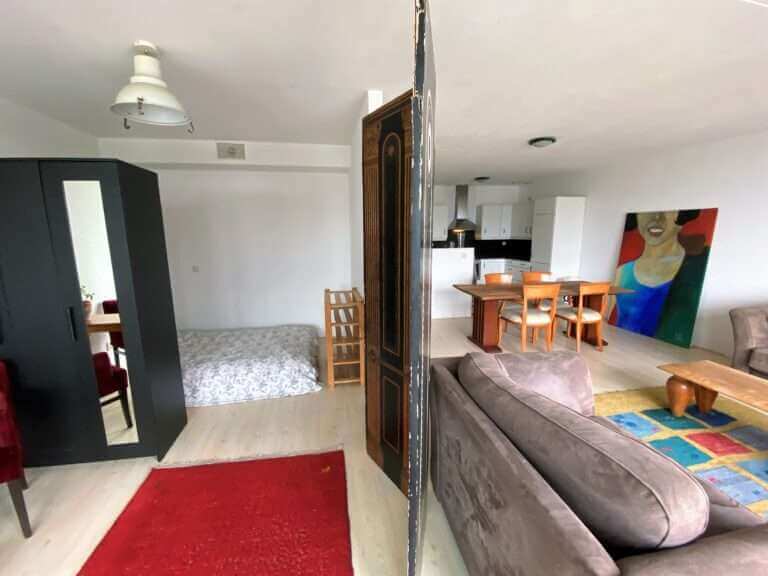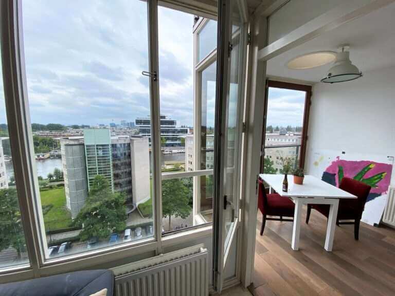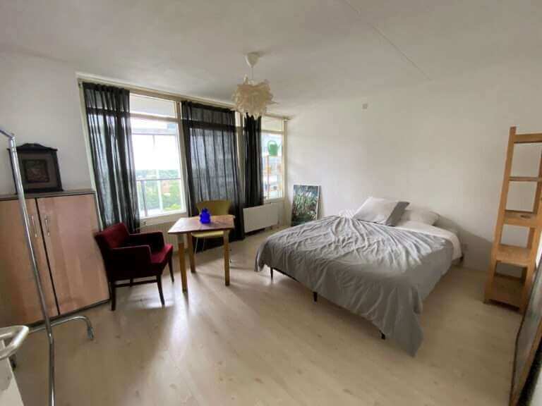 Er is een grote slaapkamer aanwezig, en er kan nog een tweede slaapkamer gerealiseerd worden grenzend aan de serre naar het balkon met uitzicht over de Amstel.