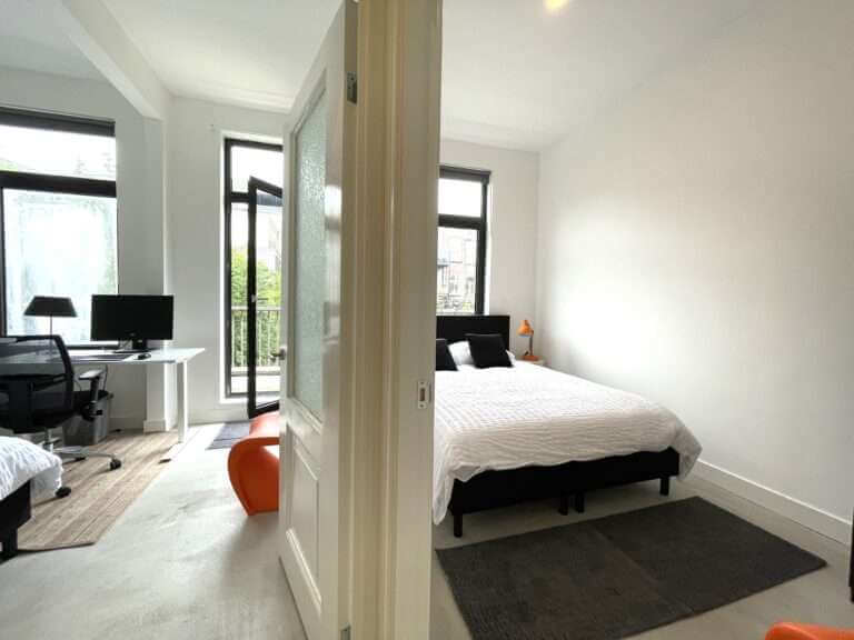 Beide slaapkamers bevinden zich aan de rustige achterzijde van het pand en bieden allebei toegang tot het balkon.