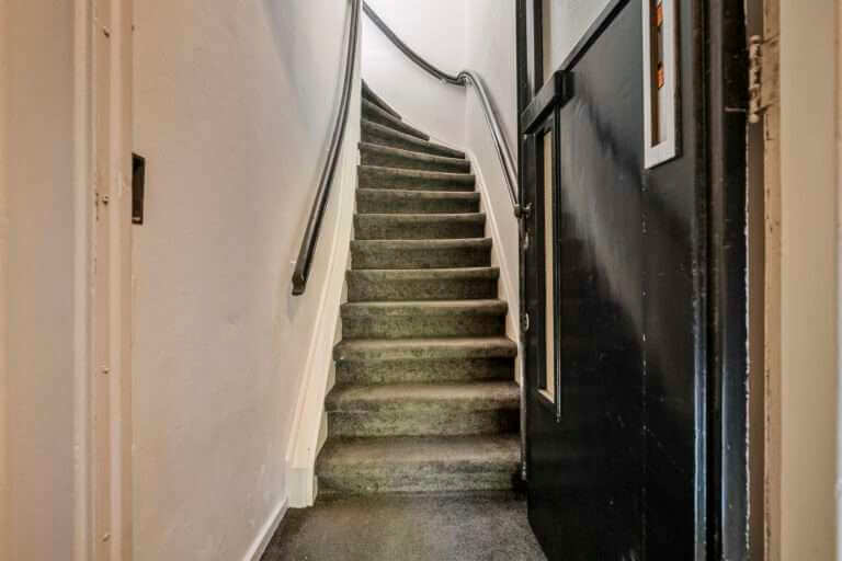 Het appartement is gelegen op de tweede en derde (tevens hoogste) verdieping.
