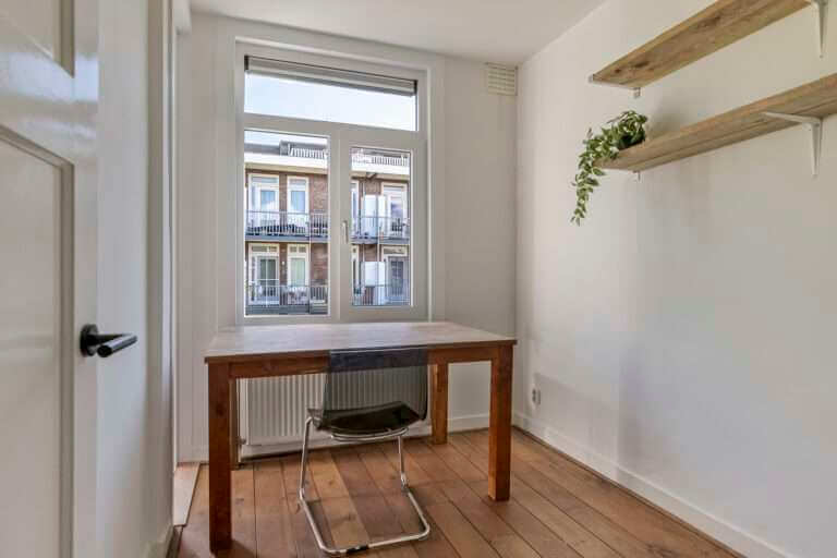 De Orteliusstraat ligt in een populaire opkomende buurt in Amsterdam-West, nabij het populaire Erasmuspark. Dit park biedt een heerlijke groene ruimte voor ontspanning, sport, of een wandeling. Daarnaast ben je binnen enkele minuten fietsen in het bruisende stadscentrum, maar woon je toch in een relatief rustige en leefbare wijk.