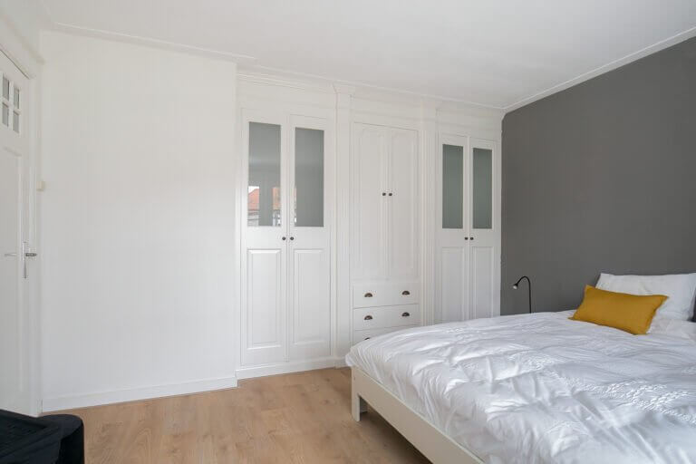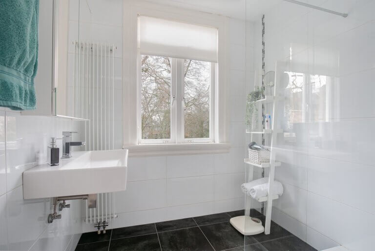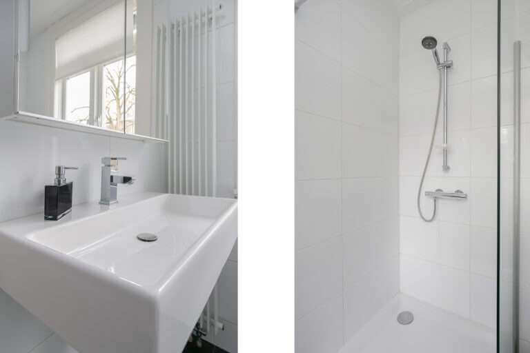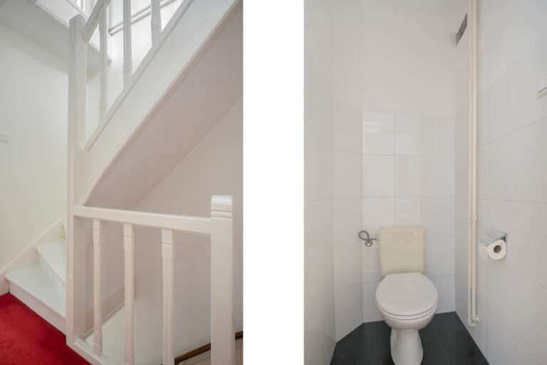 Overloop, separaat toilet, 3 ruime slaapkamers, de Masterbedroom ligt aan de voorzijde van de woning en heeft een balkon. Moderne badkamer voorzien van wastafel en inloopdouche.