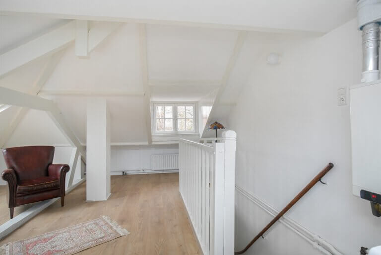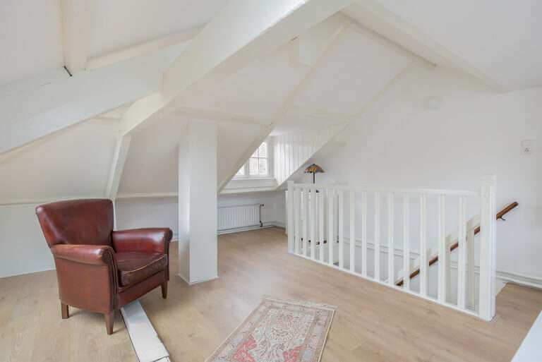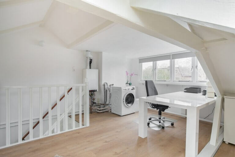 Ruime verdieping welke onlangs volledig is gerenoveerd en momenteel gebruikt wordt als kantoor. Deze kamer zou ook gebruikt kunnen worden als 4e slaap- logeer kamer. De zolder is tevens de plaats waar de wasmachine zich bevind.