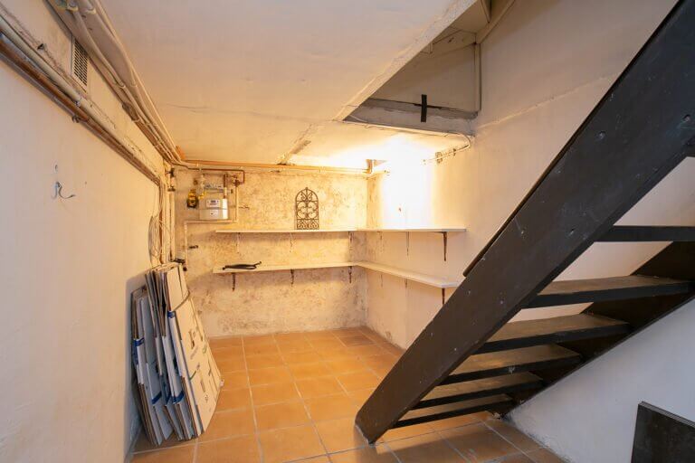 Vanuit de hal is de toegang naar de kelder/ bergruimte voorzien van elektra.