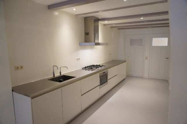 Achterin de ruime woonkamer bevindt zich de entree naar de nieuwe keuken, welke is voorzien van alle denkbare 1e klasse ingebouwde apparatuur.