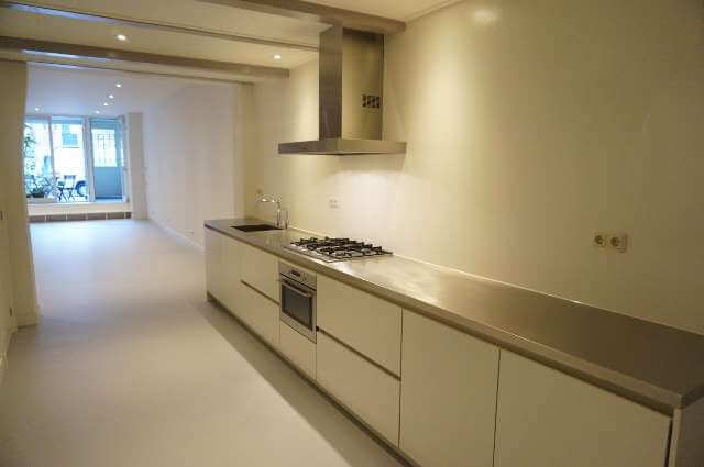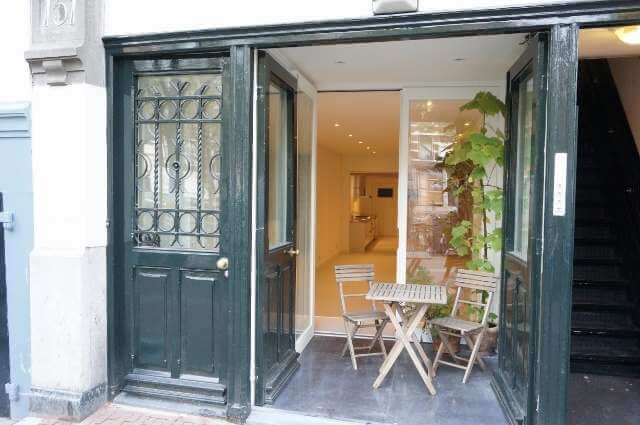 Na renovatie in de verhuur genomen, begane grond 4 kamer appartement (5×24 meter), met patio aan de grachtenzijde, op de Oudezijds Voorburgwal, in het hartje van Amsterdam.