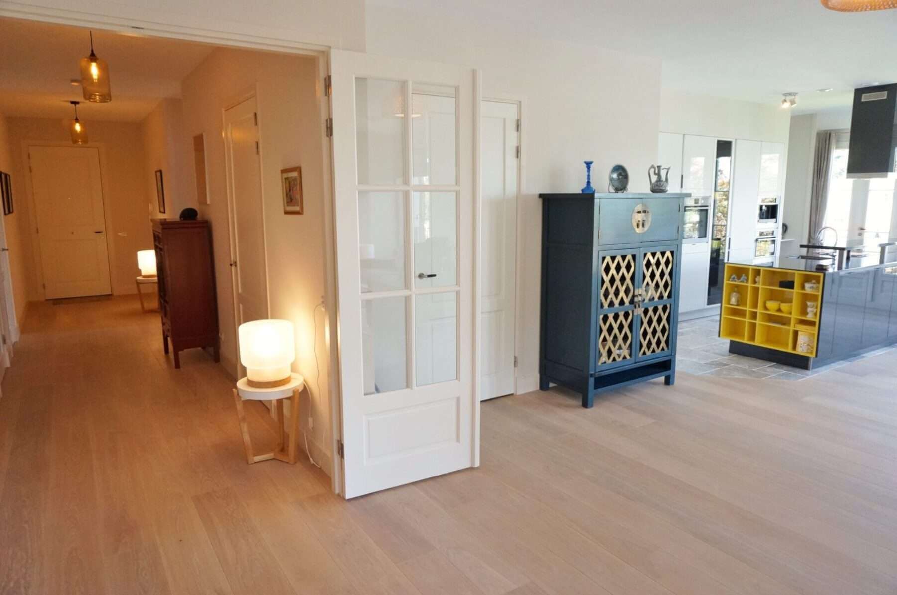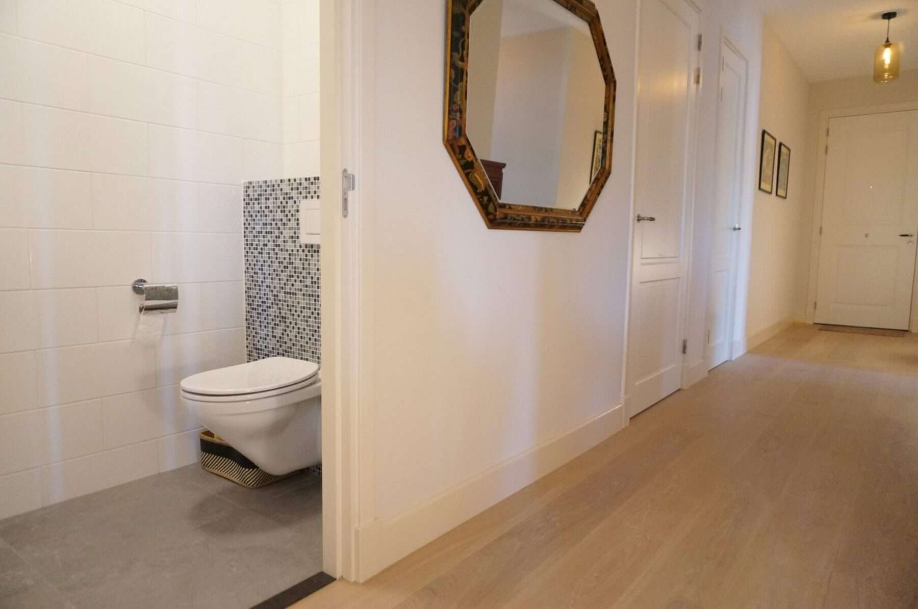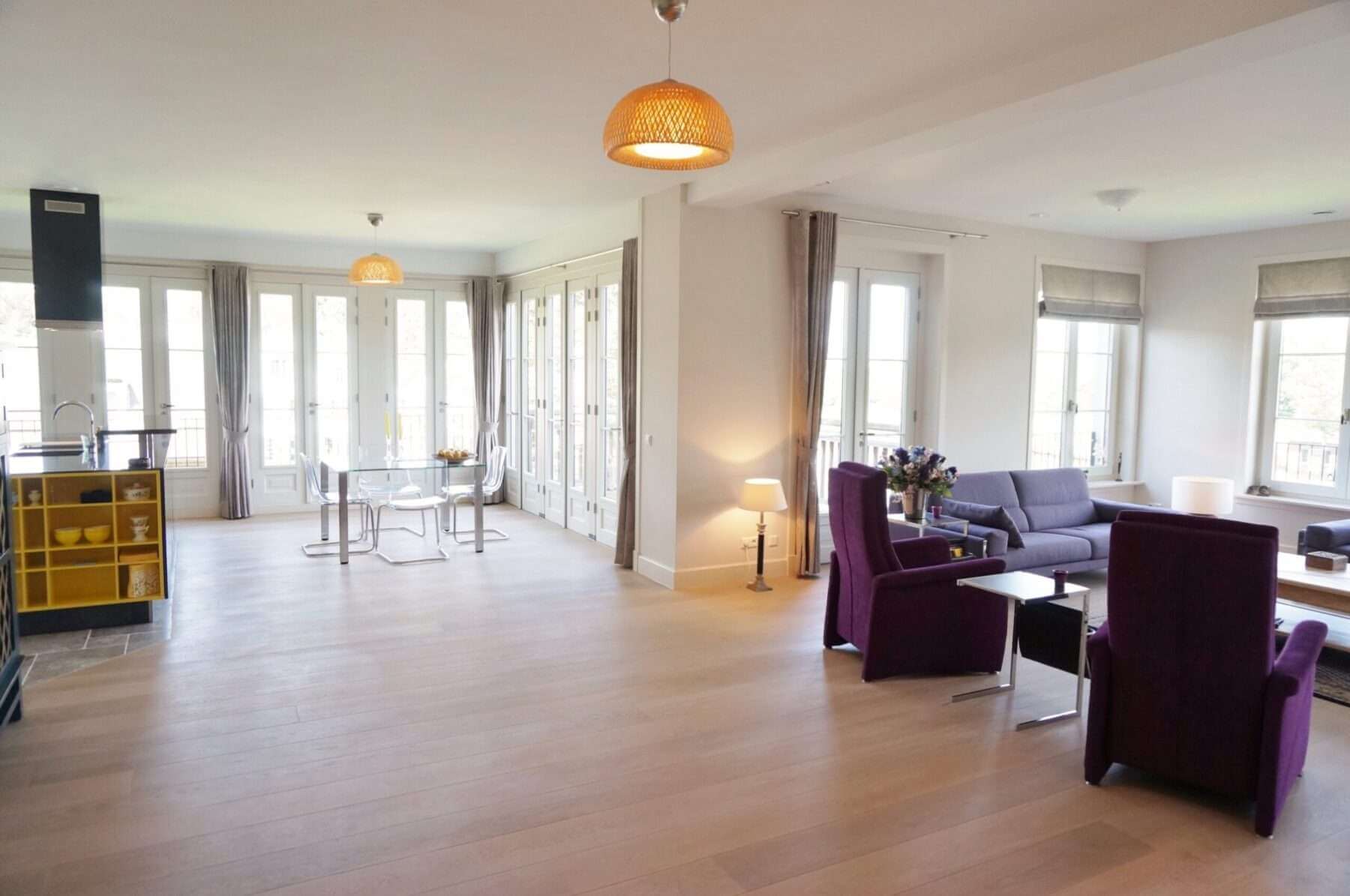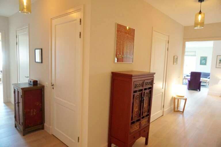 De comfortabele lichte woning biedt onder meer 2 slaapkamers, 2 badkamers, 3 toiletten, nieuwe keuken, meubilering en houten vloeren met vloerverwarming welke per ruimte te regelen is.