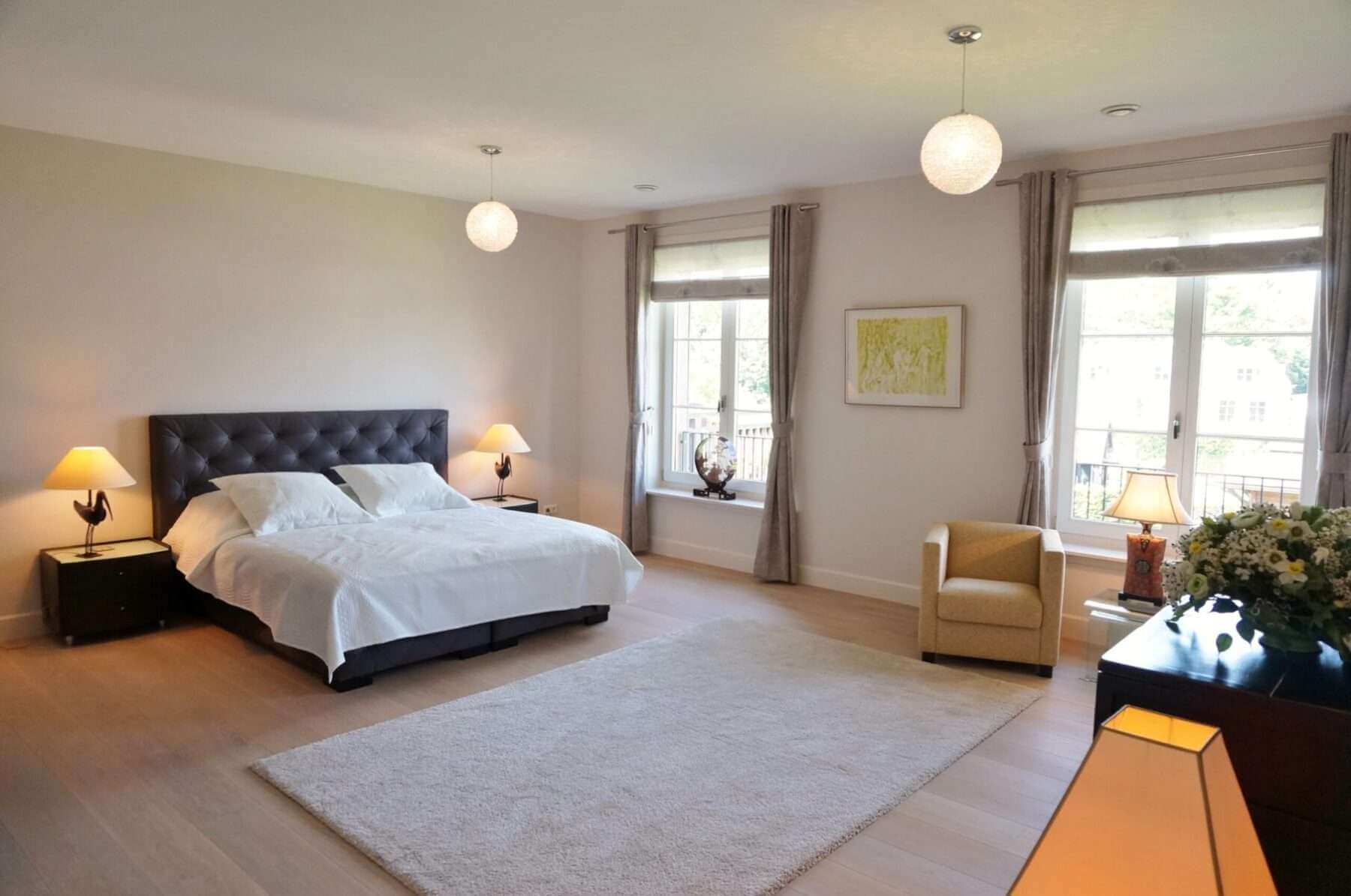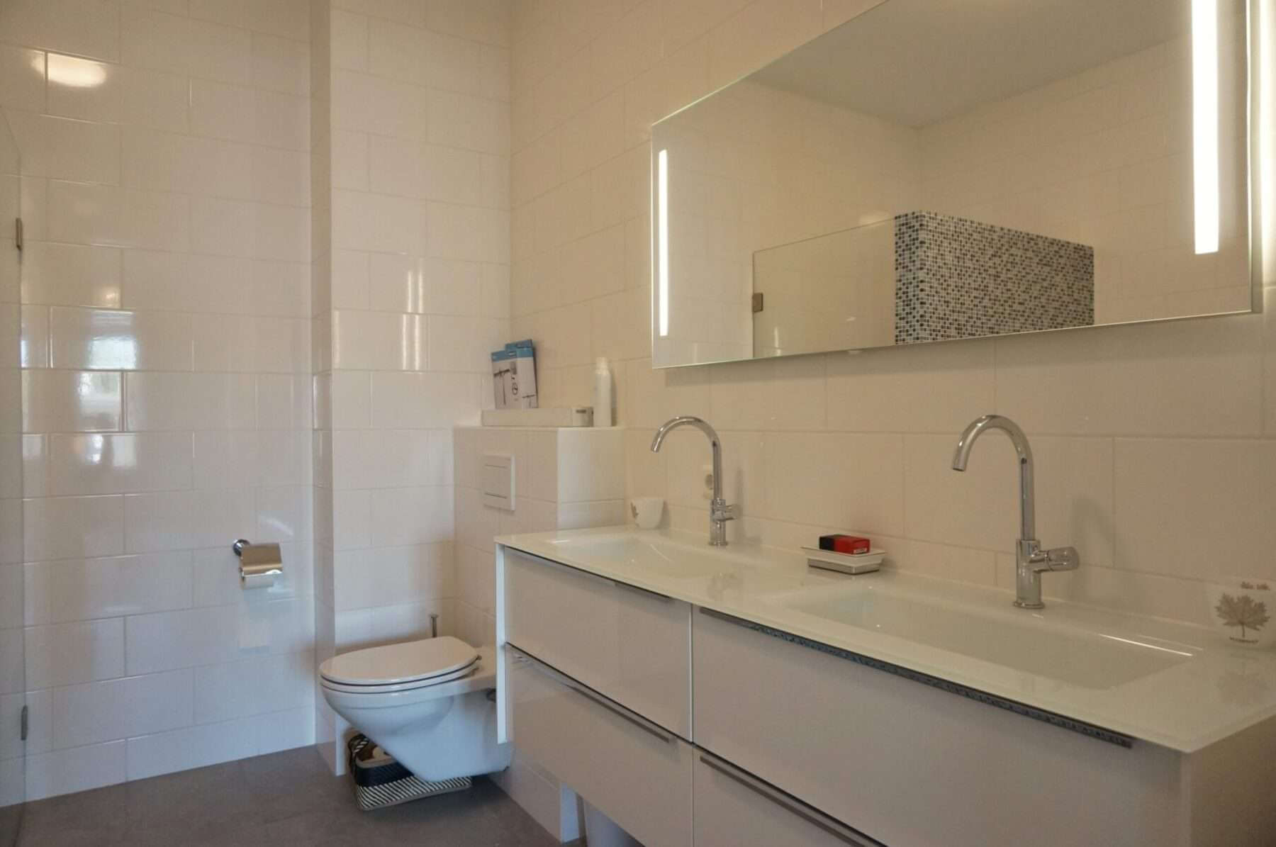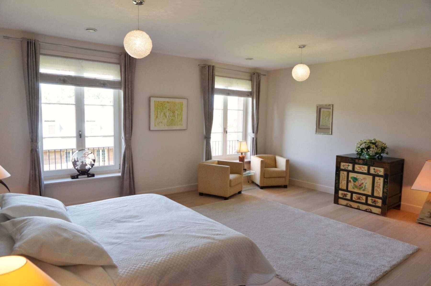 De comfortabele lichte woning biedt onder meer 2 slaapkamers, 2 badkamers, 3 toiletten, nieuwe keuken, meubilering en houten vloeren met vloerverwarming welke per ruimte te regelen is.