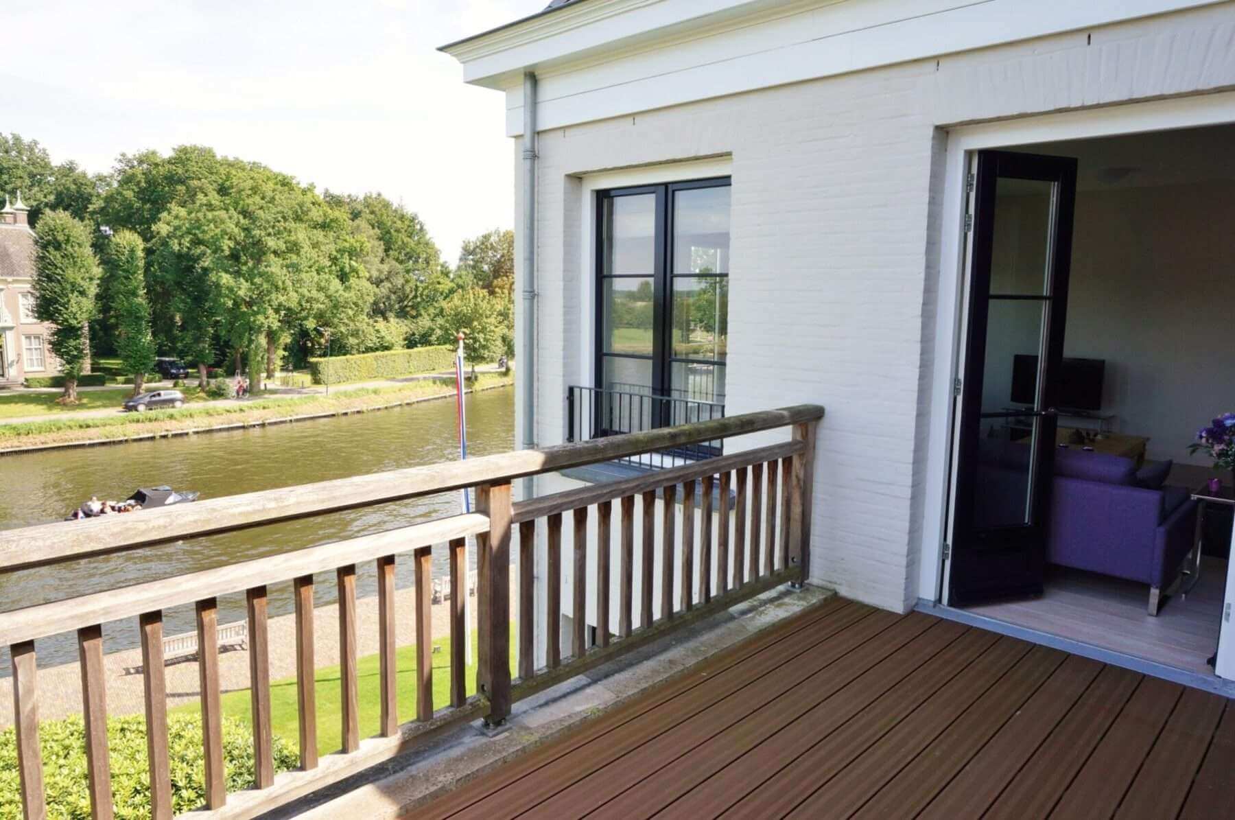 De woning biedt een riant balkon met een prachtig vrij uitzicht op de wonderschone Rivier “de Vecht”.