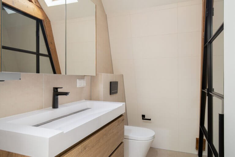– Moderne/ nieuwe trendy badkamer met douche, toilet en wastafel en tweede toilet;