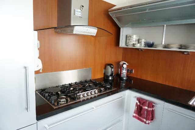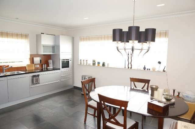 Ruime eetkeuken voorzien van alle gemakken waaronder een Amerikaanse koelkast, brede 5 pits gasfornuis en eettafel.