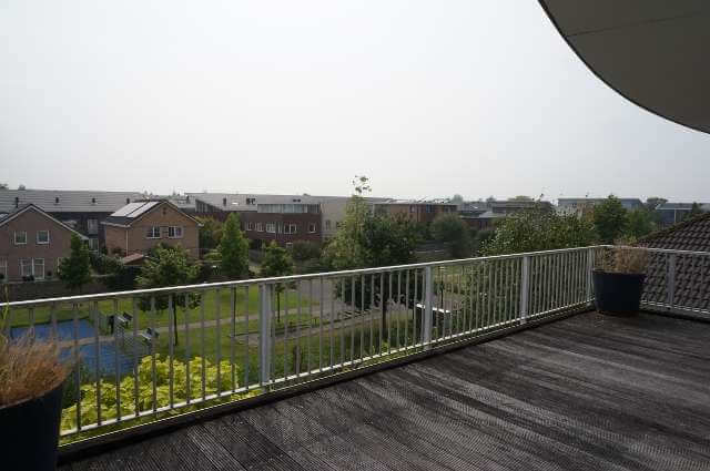 Aan de achterzijde heeft u in alle privacy uitzicht over de groenstrook met speeltoestellen en een waterpartij.