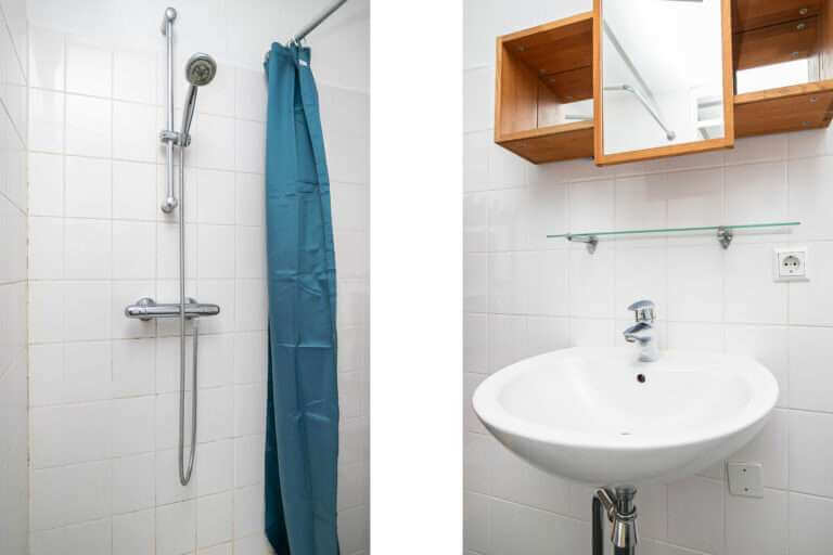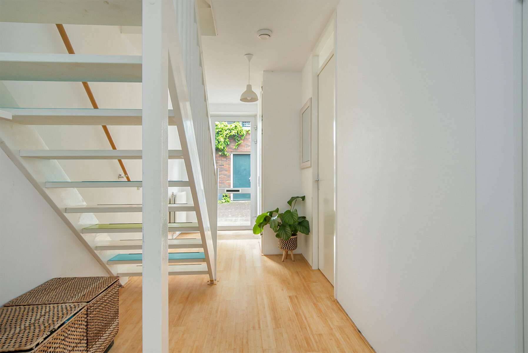Begane grond: eigen entree van de woning met toegang tot slaapkamer met openslaande deur. Badkamer met wastafel, douche en wasmachine. Vanuit de hal heeft u toegang tot de berging welke ook achterom te bereiken is.
