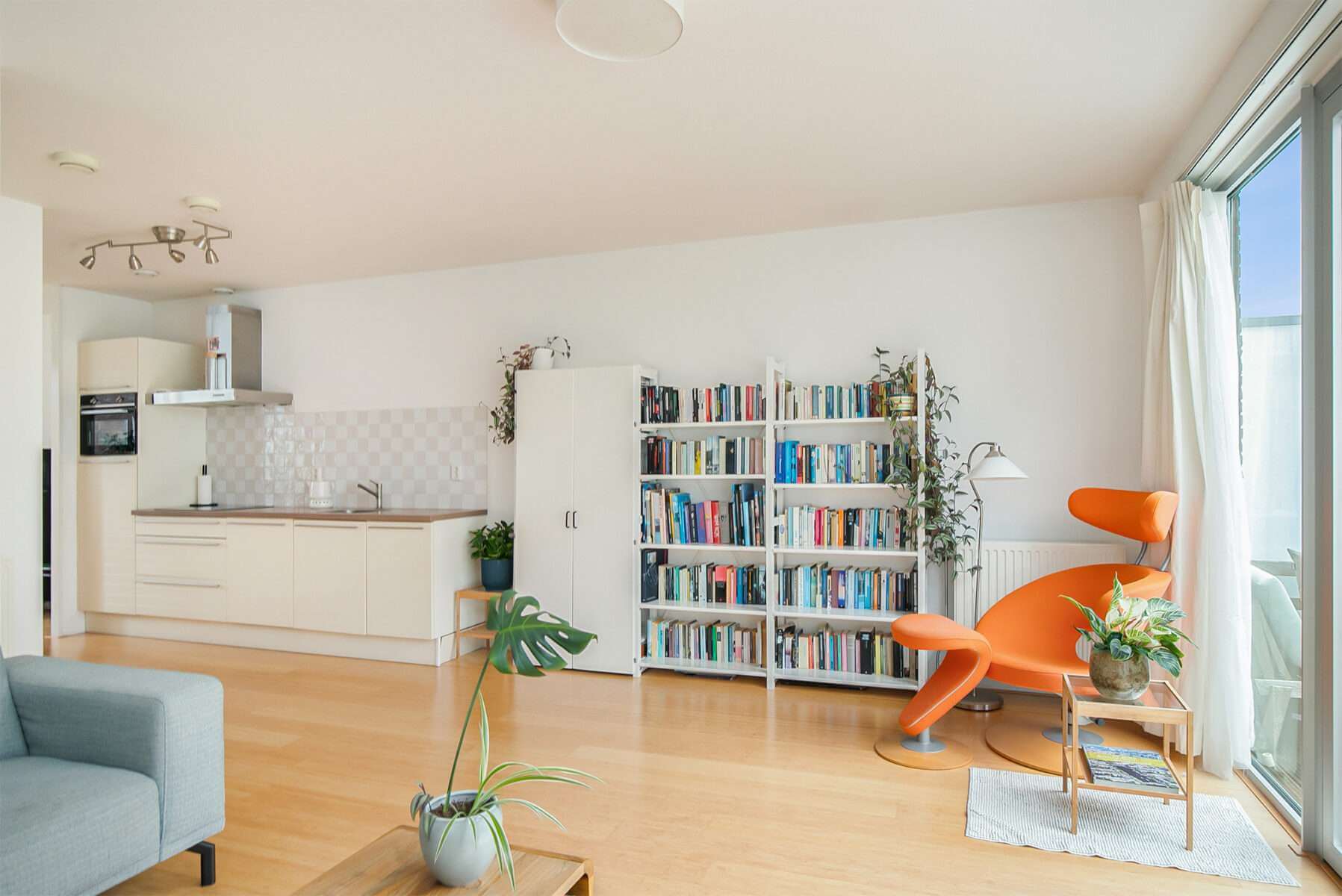 * lichte en zonnige woonkamer