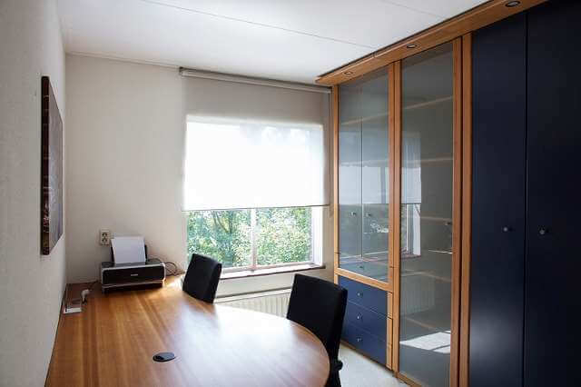 De derde slaapkamer is momenteel ingericht als kantoorruimte. Het kantoor beschikt over veel opbergruimte en een Frans balkon.