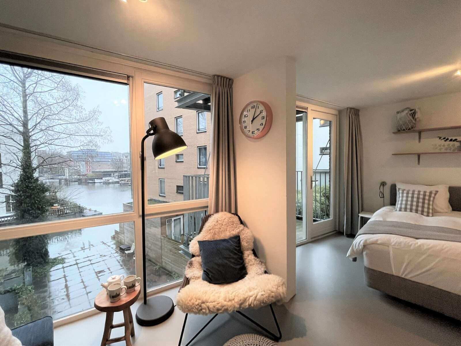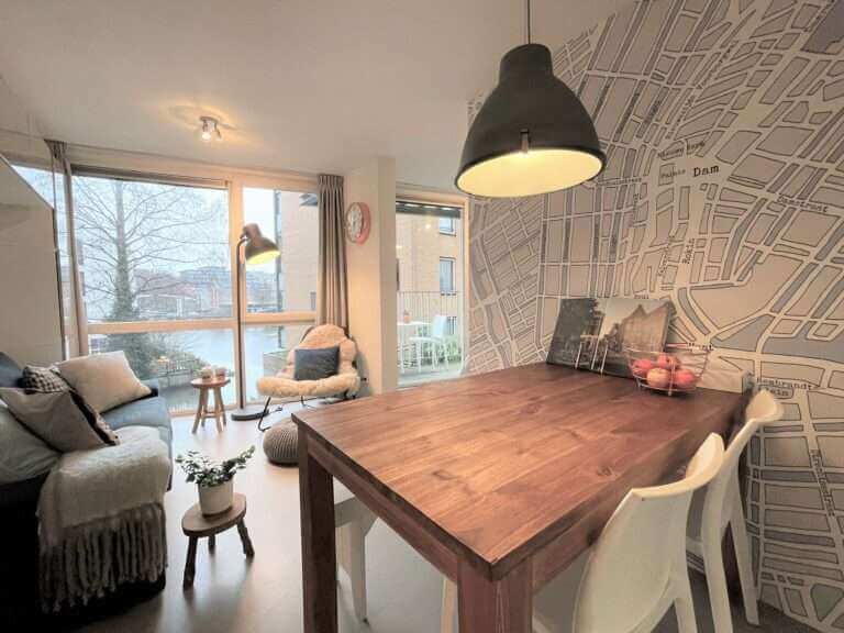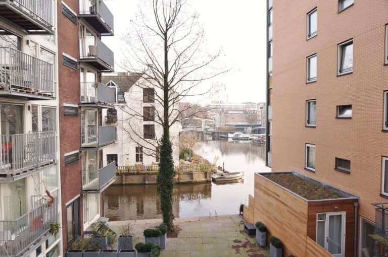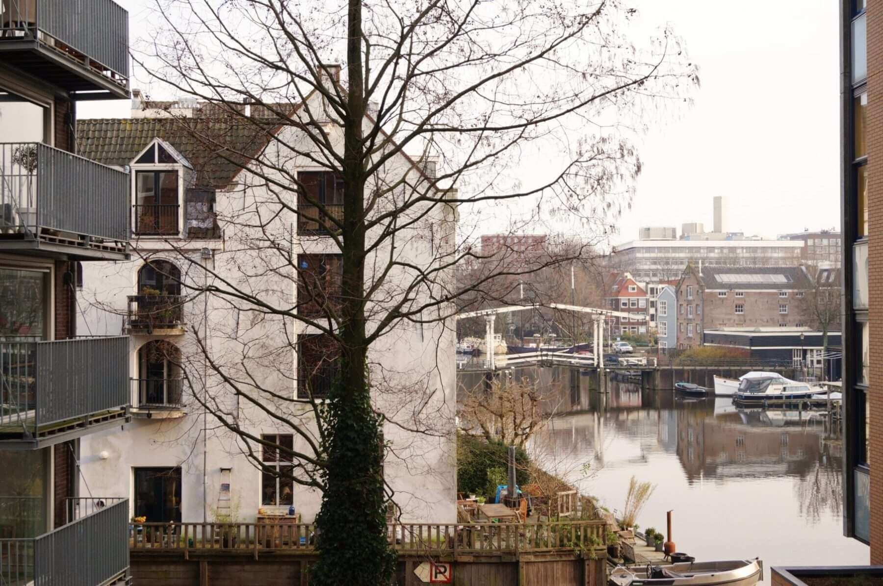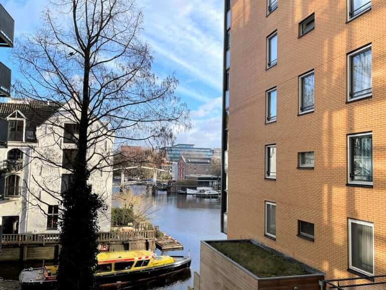 Dit compacte appartement heeft veel licht door de hoge ramen en biedt een mooi uitzicht over historisch Amsterdam; het Prinseneiland, het kanaal en de smalste brug van de stad de ‘Drieharingenbrug’.