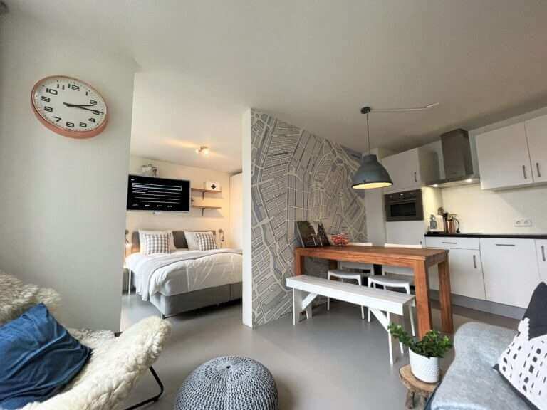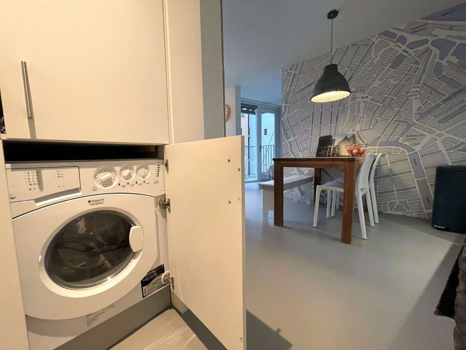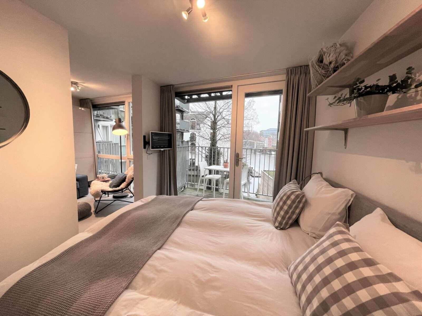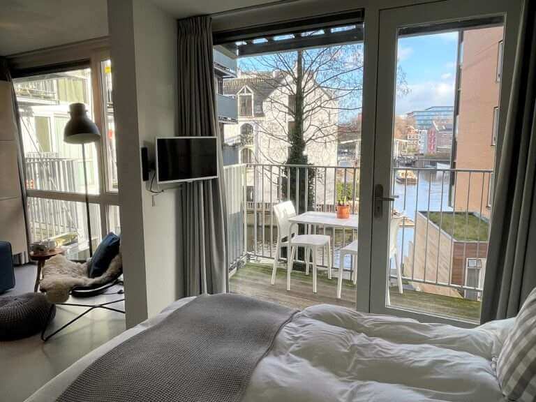 Dit compacte appartement heeft veel licht door de hoge ramen en biedt een mooi uitzicht over historisch Amsterdam; het Prinseneiland, het kanaal en de smalste brug van de stad de ‘Drieharingenbrug’.