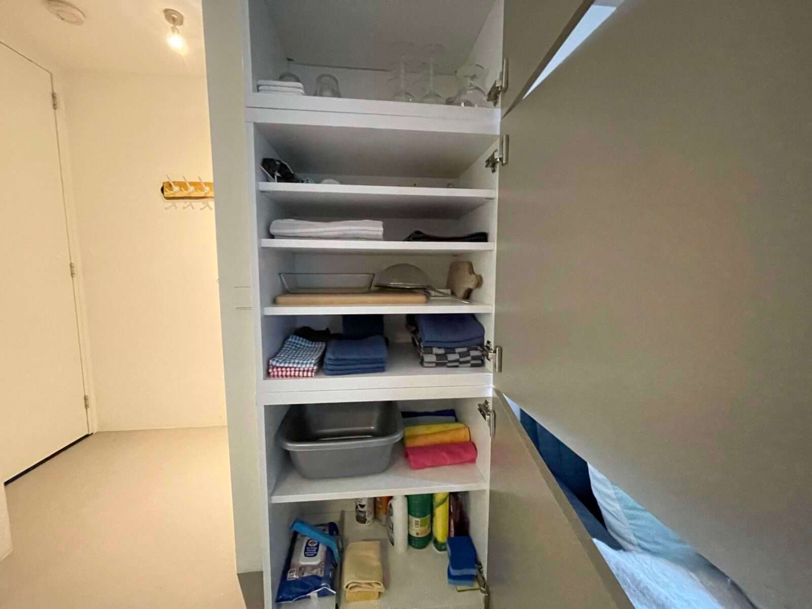 De keuken is voorzien van een vaatwasser, oven / magnetron combinatie, inductie kookplaat en een Quooker.