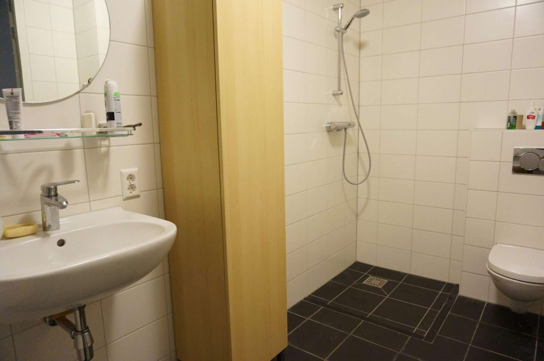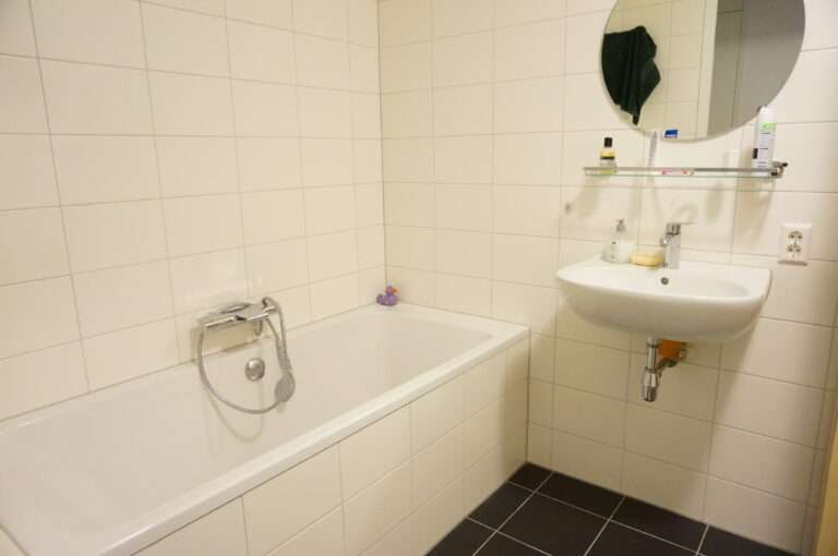 Badkamer met bad, douche, wastafel en toilet. 2e toilet..