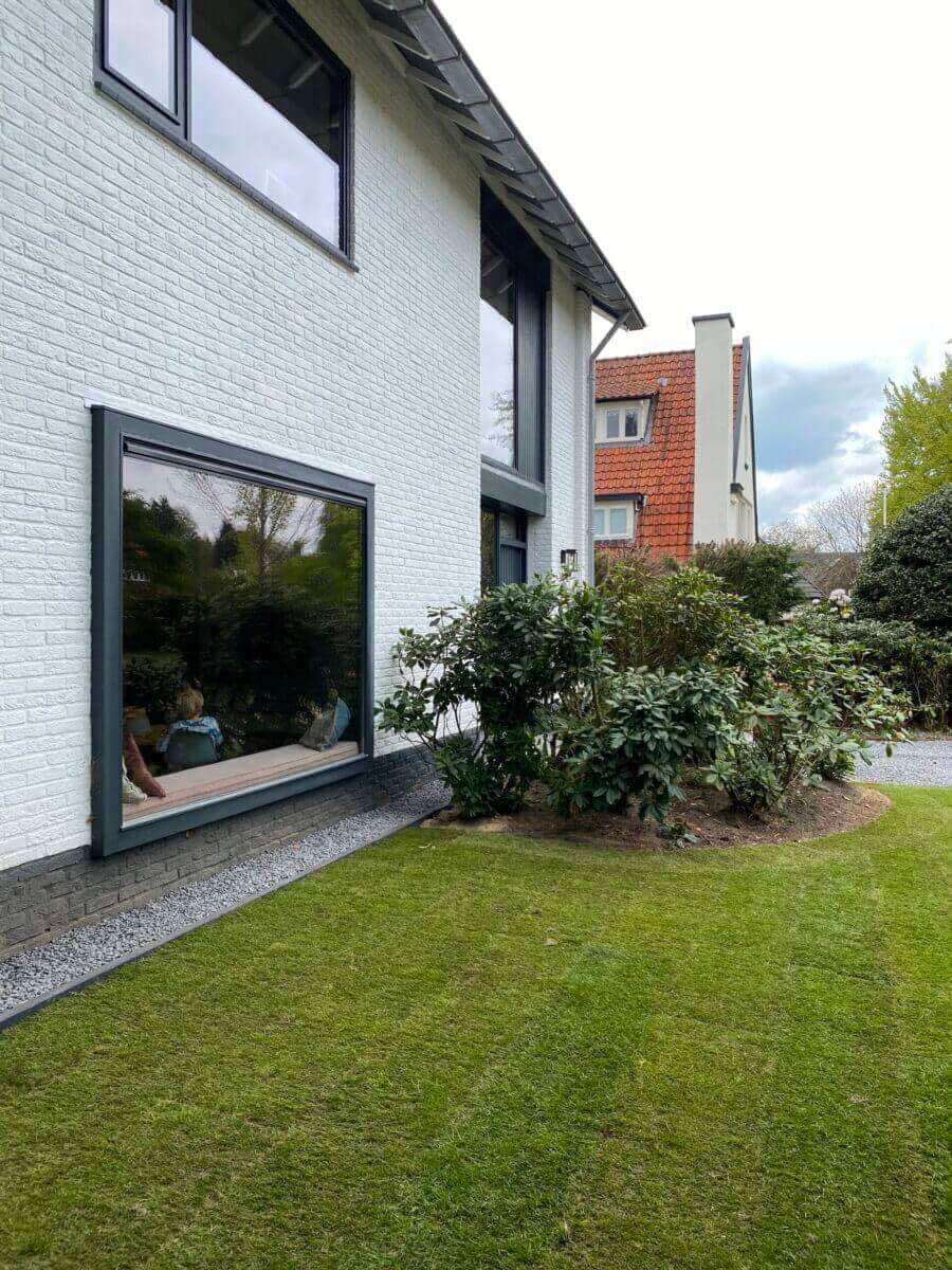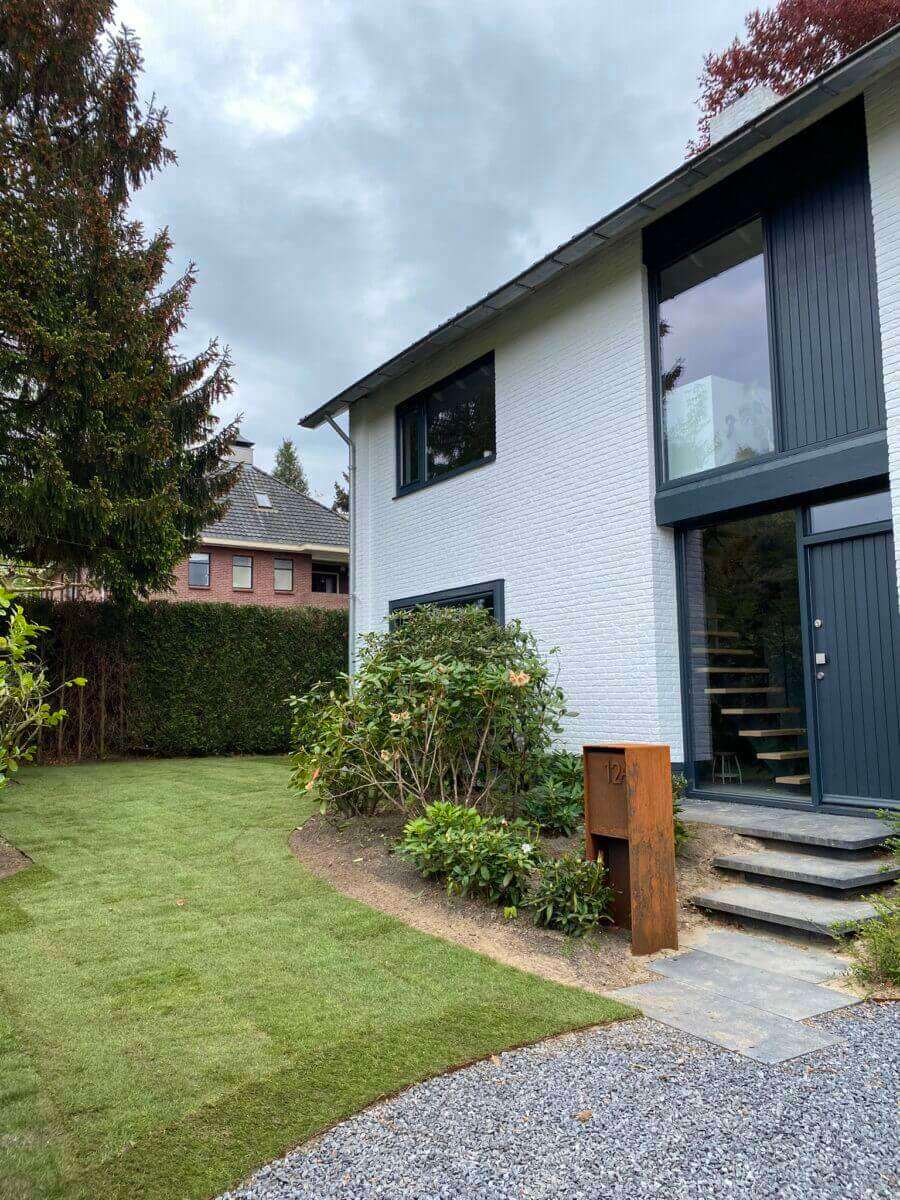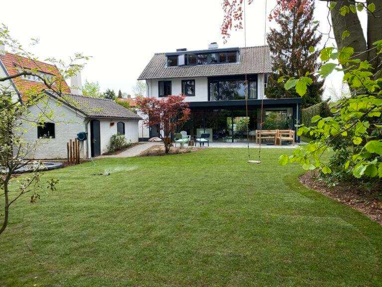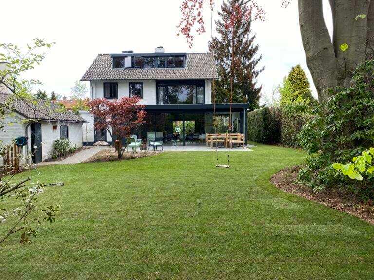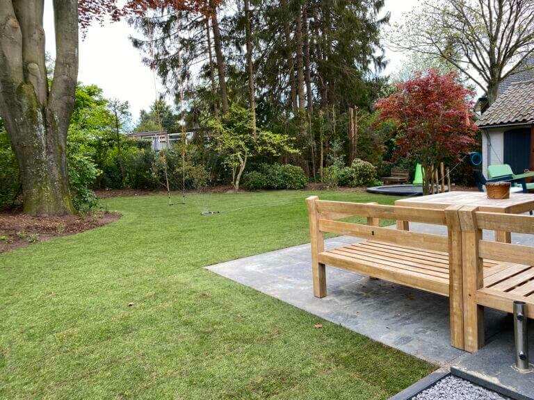 Rondom de villa is een onder architectuur aangelegde tuin, mooi gazon, borders, bomen en groene heesters zorgen voor veel privacy, het grote zonnige terras een heerlijke plek om te bbq’en, te eten met een groot gezelschap of heerlijk te loungen.