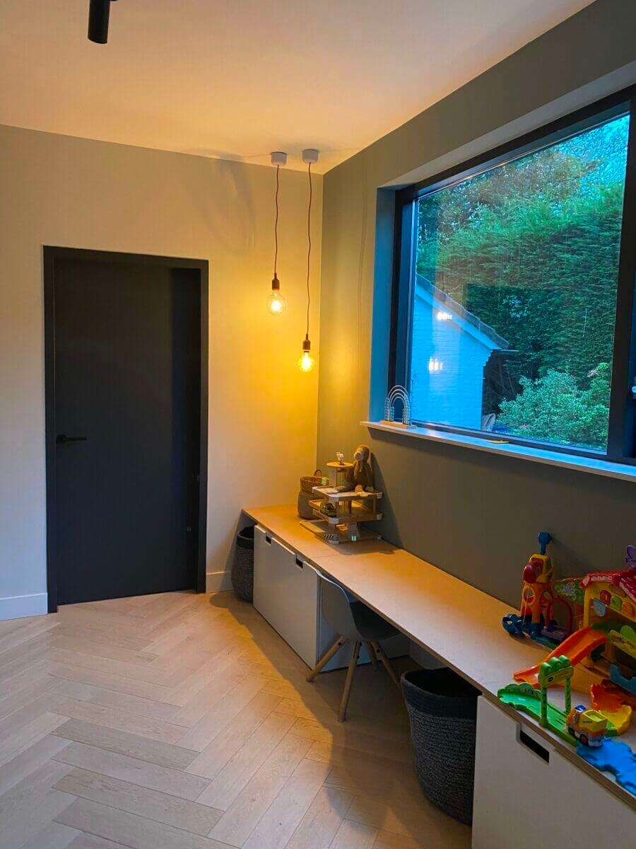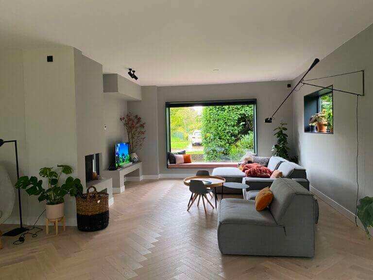 Entree, royale hal met een fraai trappenhuis heeft u toegang tot de woonkamer en de speelkamer/werkkamer. In de woonkamer aan de voorzijde van de woning is het heerlijk tot rust komen in de gezellige zithoek met een open haard.