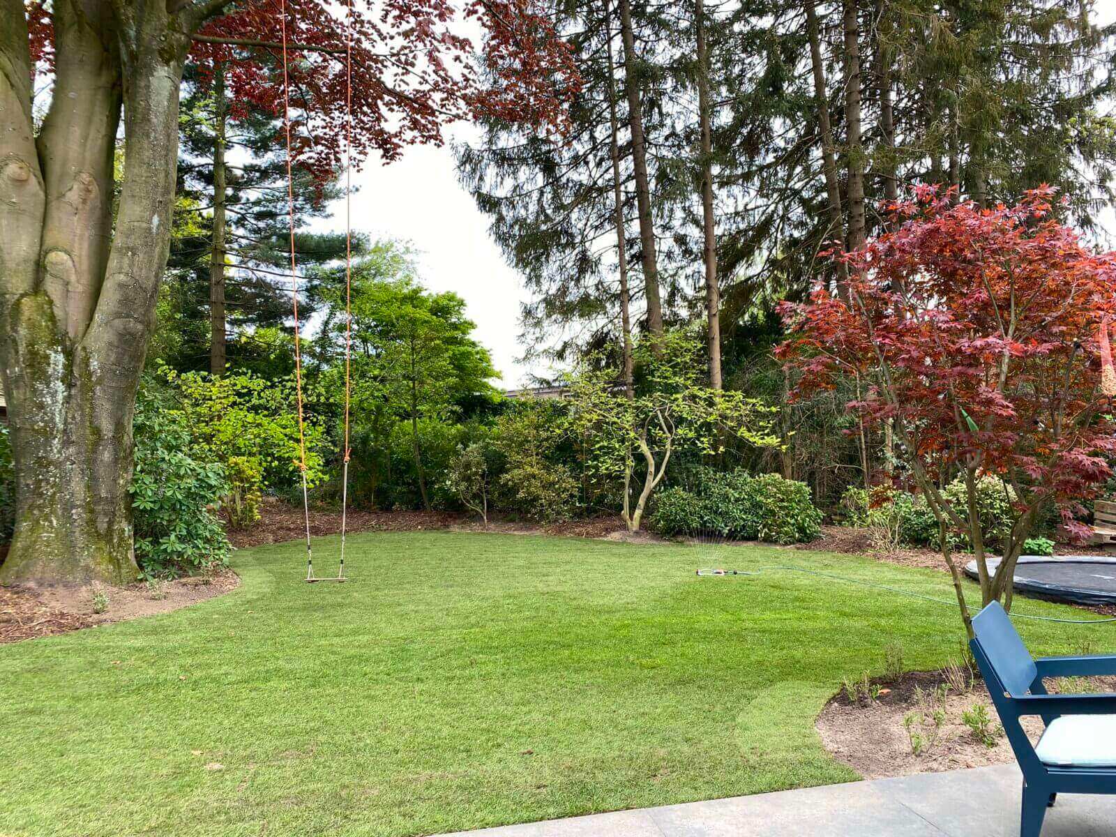 Ook voor uw (klein)kinderen is de tuin fantastisch, een trampoline en een schommel in hoge rode beukenboom in de achtertuin.