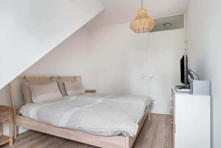 De ruimte op de tweede verdieping is te bereiken via een vaste trap op de overloop. Deze ruimte bevat een uitschuifbed en is daardoor te gebruiken als derde slaapkamer en biedt u daarnaast veel bergingsmogelijkheden.