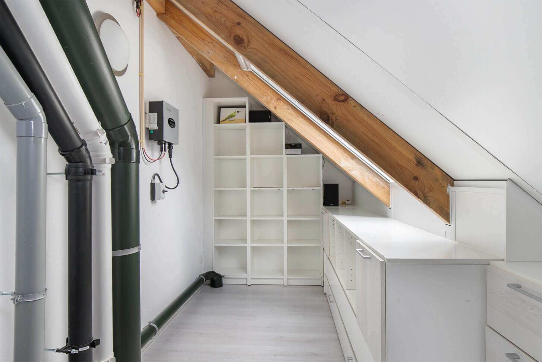 De overloop biedt ook toegang tot een berging en een technische ruimte met opstelling van de C.V. combi-ketel.