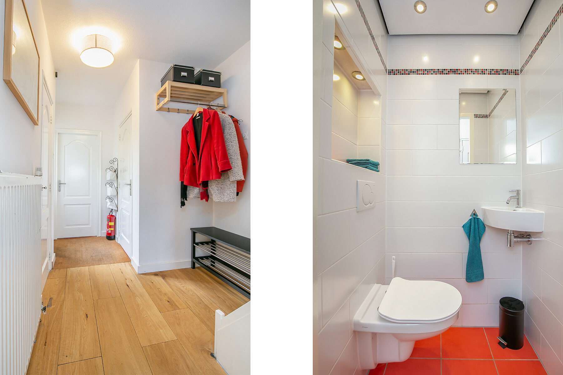 De hal geeft ook toegang tot een berging en toilet.