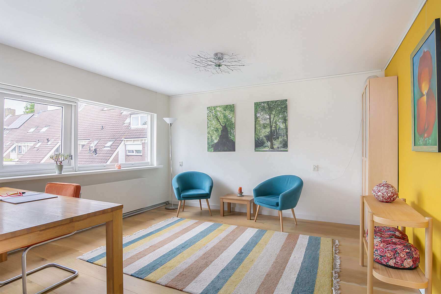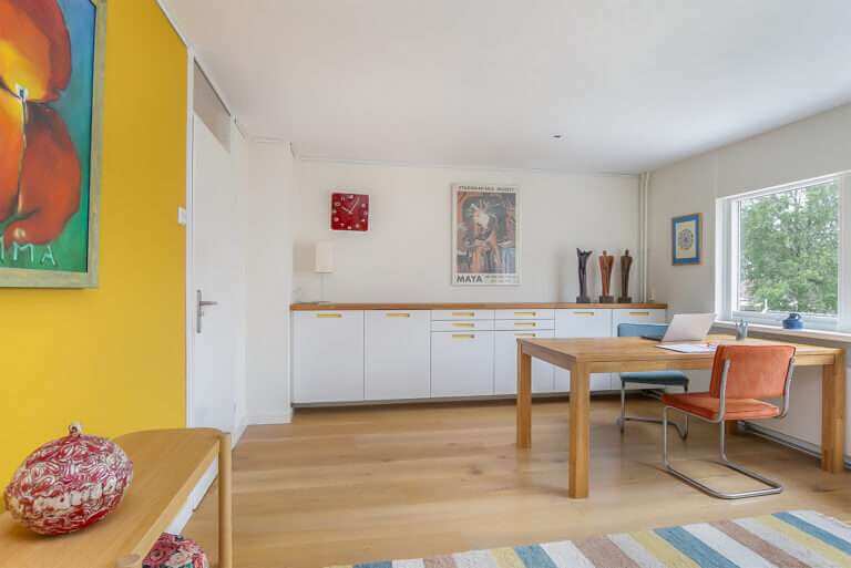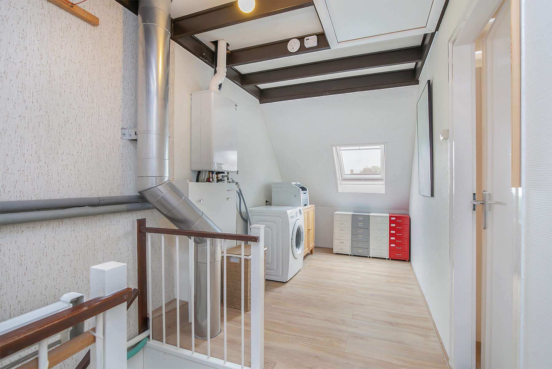 Op de tweede verdieping ligt de derde (slaap)kamer en wasruimte.