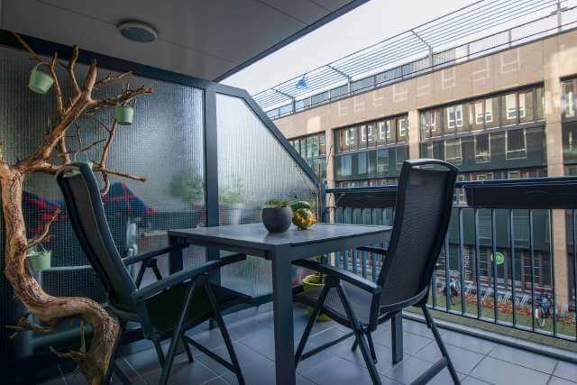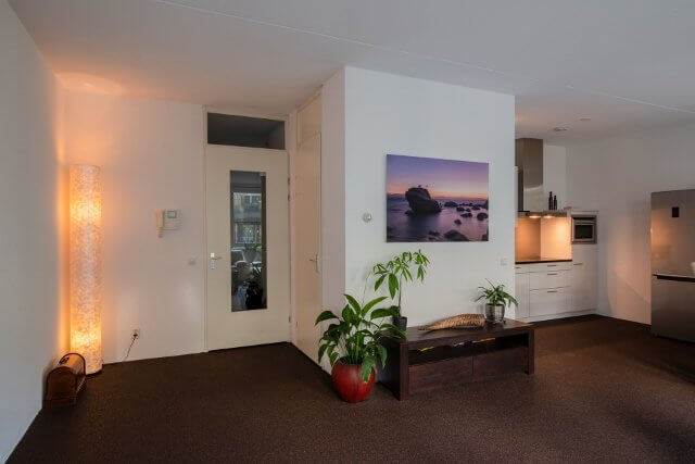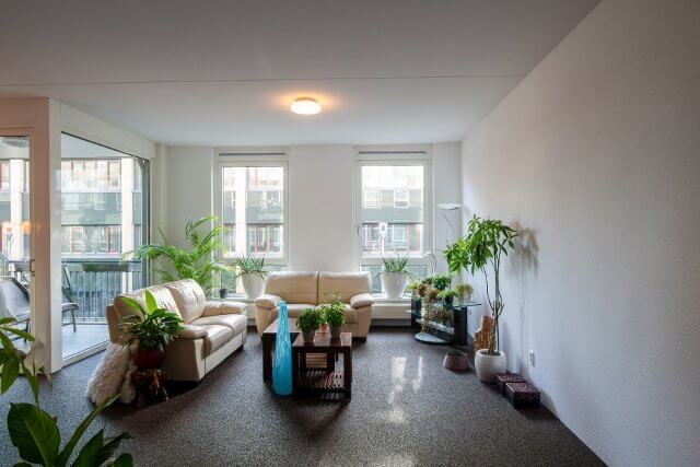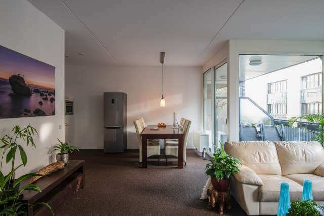 De woonkamer biedt middels een schuifdeur toegang tot de ruime loggia 6m2 op het zuiden. Het hele appartement is voorzien van een moderne grindvloer.