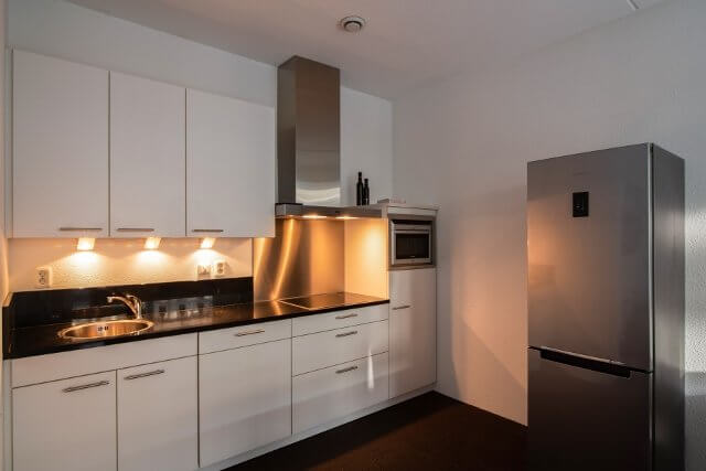 Aparte bergruimte van 2 m2 met doorstroomapparaat voor de blokverwarming, wasmachine, droogautomaat en de mechanische ventilatiebox. De ruime woonkamer van 43m2 heeft een luxe open keuken in rechte opstelling voorzien van een granieten werkblad, koel-vriescombinatie, 4-pits inductie kookplaat, afzuigkap, rvs-spoelbak, combi oven/magnetron, vaatwasser.