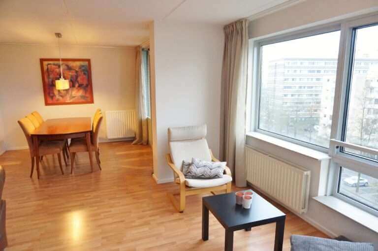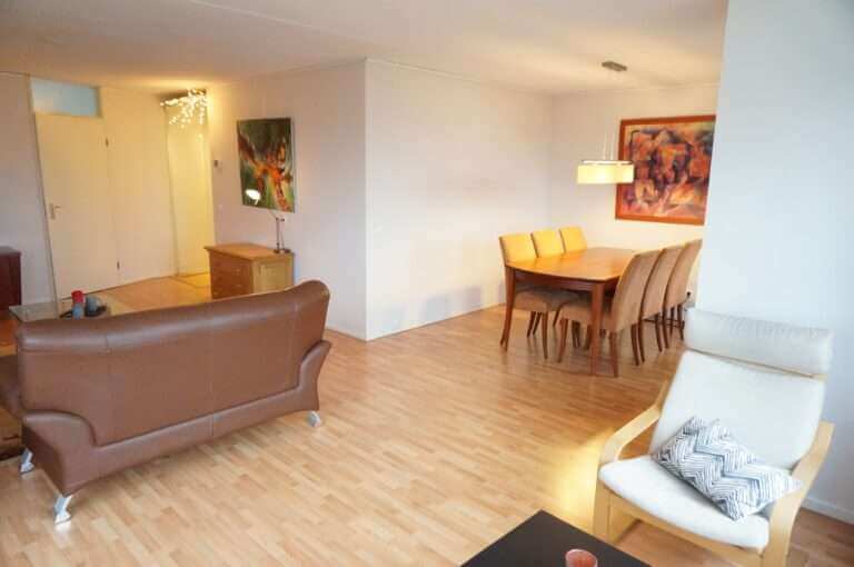 Licht en ruim hoek appartement van circa 100m2, met 2 slaapkamers en zonnig balkon op het Zuid Westen,