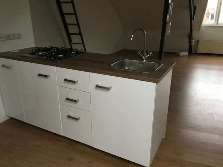 In de keuken is tevens de aansluiting voor de wasmachine. De trap vide in de woonkamer geeft entree tot het slaapgedeelte.