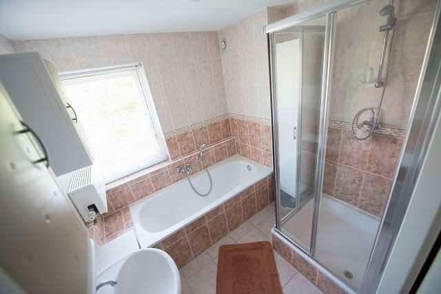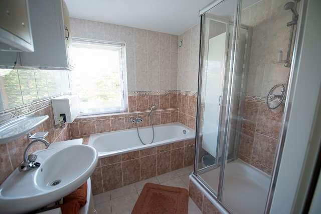 Eerste verdieping; Gesloten trap naar de eerste verdieping, alwaar zich drie ruime slaapkamers bevinden. Badkamer met 2e toilet, douchecabine en ligbad.