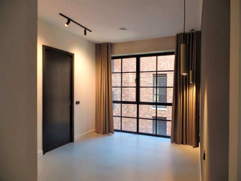 Binnenkomst in de ruime hal met toegang tot alle vertrekken. Hier wordt je direct verrast door de hoeveelheid ruimte, hoogte van het plafond (3,50m!), licht en stoere eerste indruk! De zeer royale woonkamer met mooie openslaande deuren naar het ruime balkon, de mooie zwarte ramen met roedeverdeling en de gezellige en knusse sfeer van de locatie geven jou de echte wauw factor!