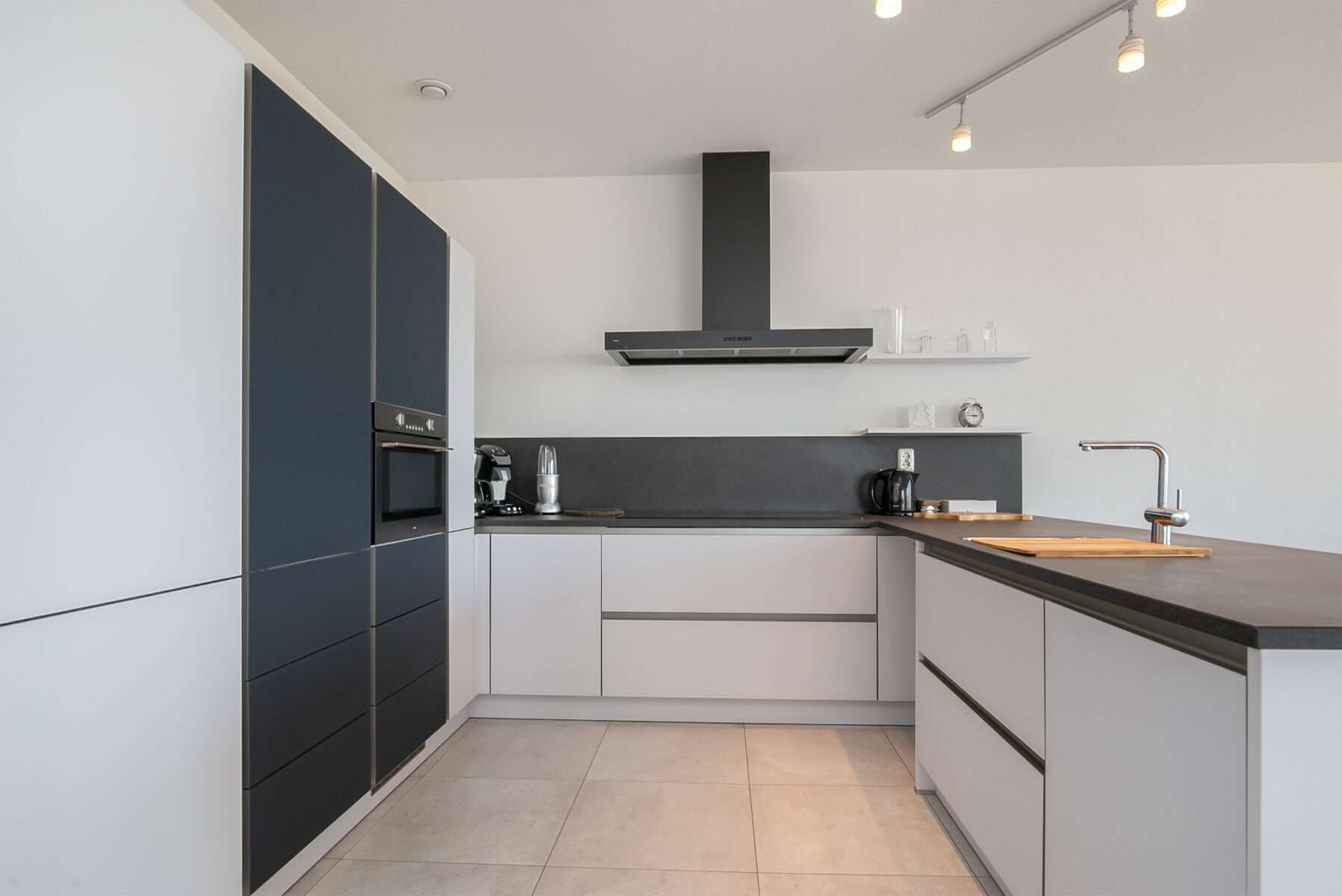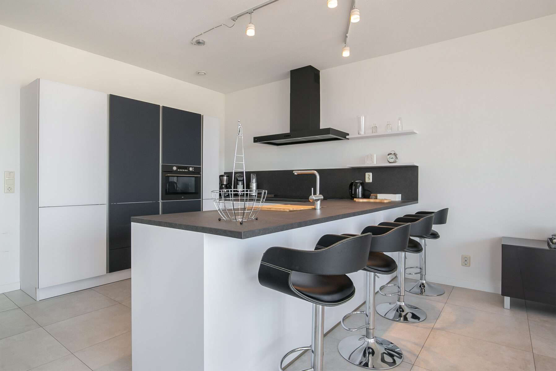 De prachtige open keuken is voorzien van diverse inbouwapparatuur, zoals een grote koelkast, een separate extra grote vriezer, inductiekookplaat, vaatwasser, spoelbak, afzuigkap en combinatie oven magnetron. Bovendien is aan de kant van eethoek door de verdieping van het werkblad van de keuken een bar met 4 barstoelen gecreëerd waar u voordat u aan tafel gaat heerlijk kunt borrelen.
