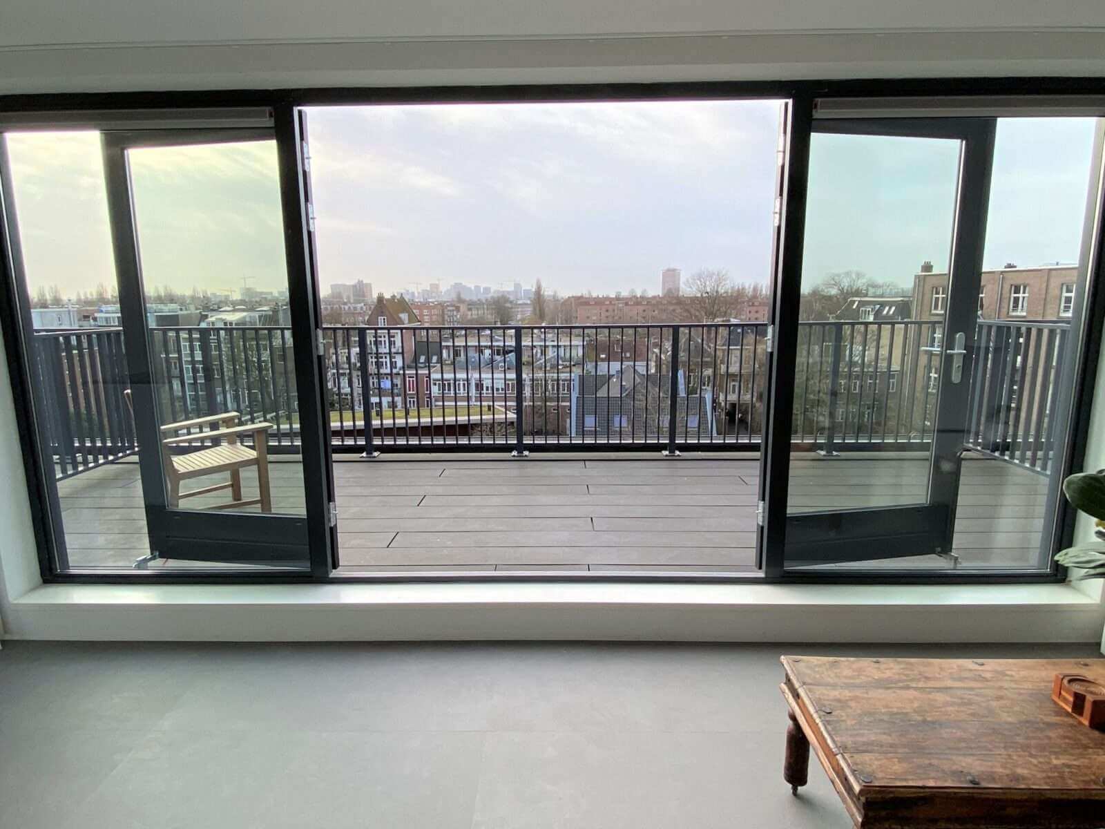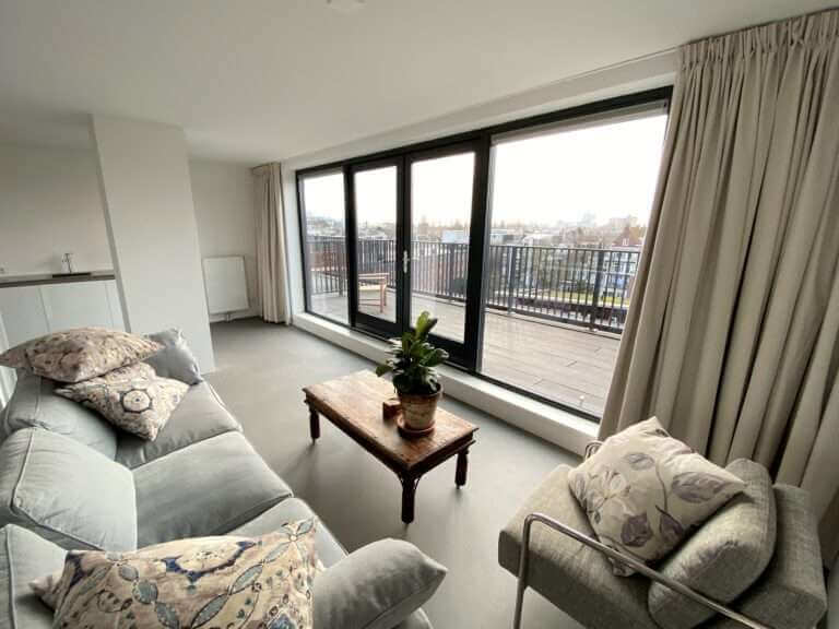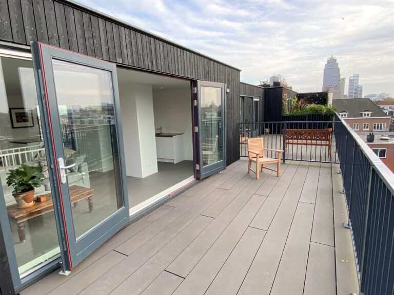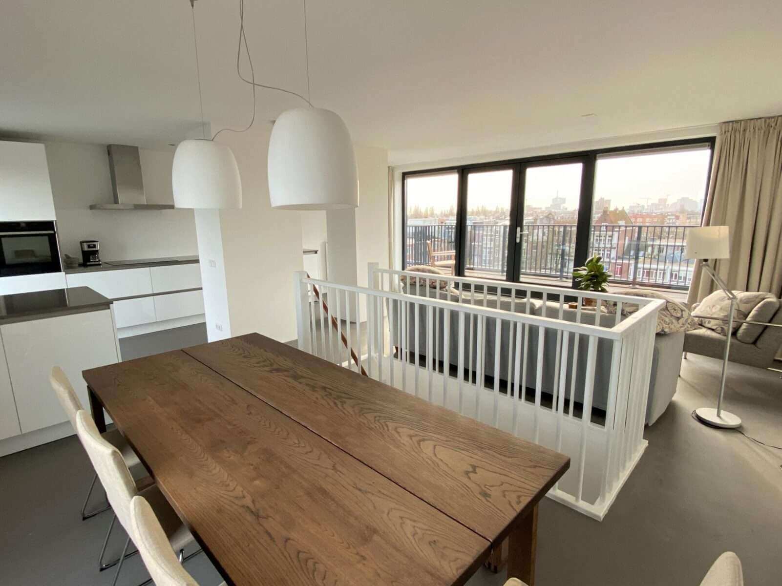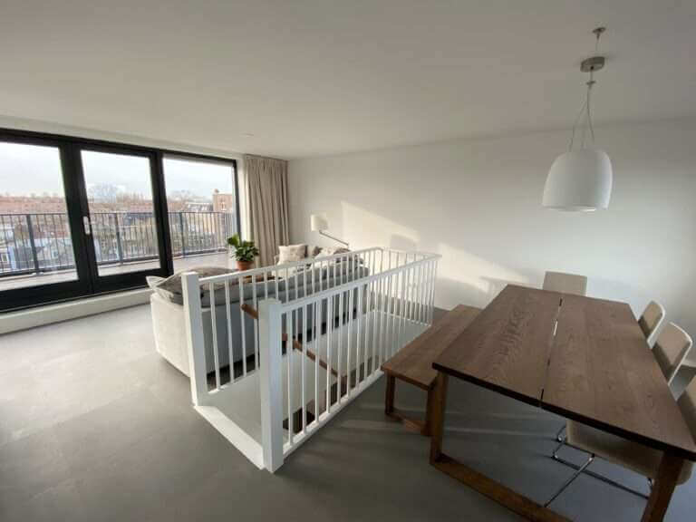 Middels een tweede interne trap bereikt u de 5e, tevens hoogste, verdieping, deze open ruimte biedt u een nieuwe woonkeuken, ruim eetgedeelte, gezellige huiskamer en aan beiden zijden van de etage 2 ruime dakterrassen die uw verblijf veraangenamen.
