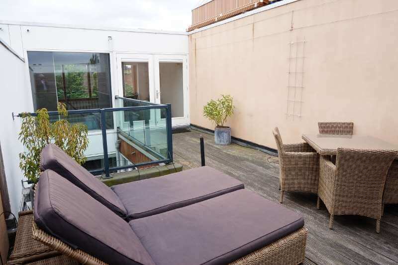Luxe woonhuis met twee slaapkamers, 2 badkamers, dakterras en eigen parkeerplaats.