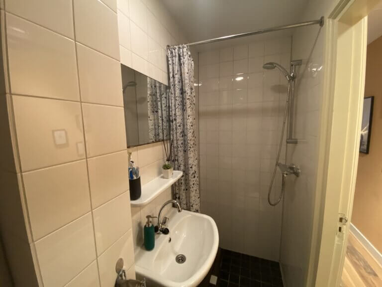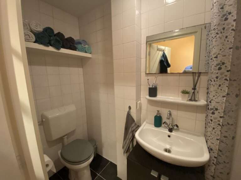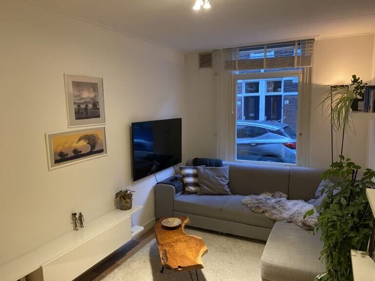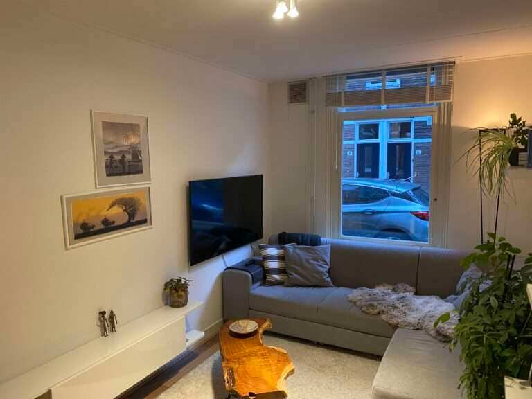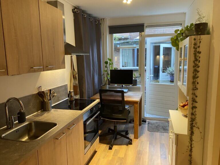 Het appartement bevindt zich op de begane grond van het pand. Via de entree kom je bij de woonkamer aan de voorzijde. Via de overloop loop je door naar de half open keuken die zich aan de achterzijde van het huis bevindt. De nette keuken is voorzien van een elektrische kookplaat, afzuigkap, koelkast, combi magnetron en voldoende kastruimte. Via de keuken betreedt je ook de achtertuin. De slaapkamer is voorzien van bed en kast. In de badkamer vind je de douche, wastafel en toilet.